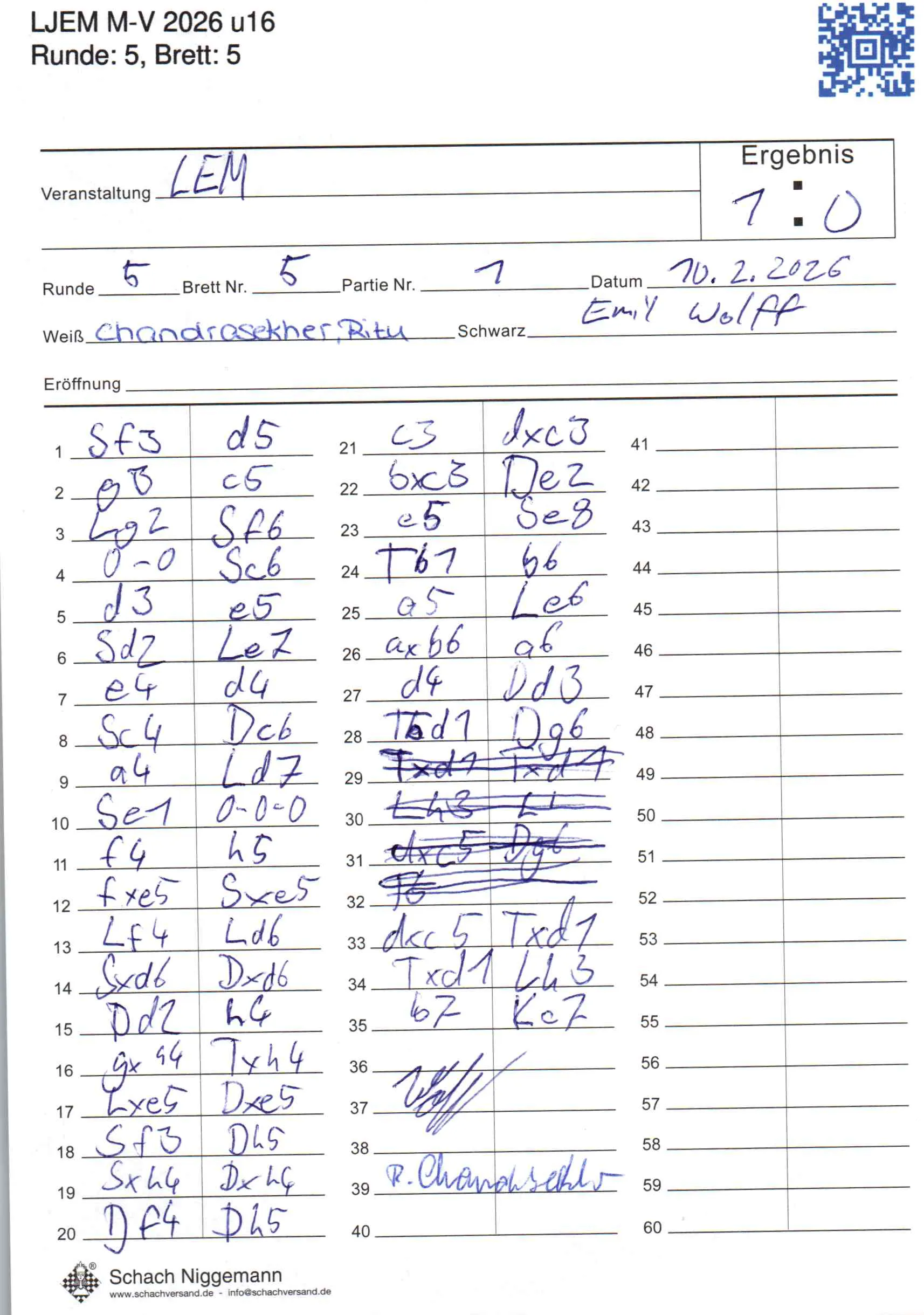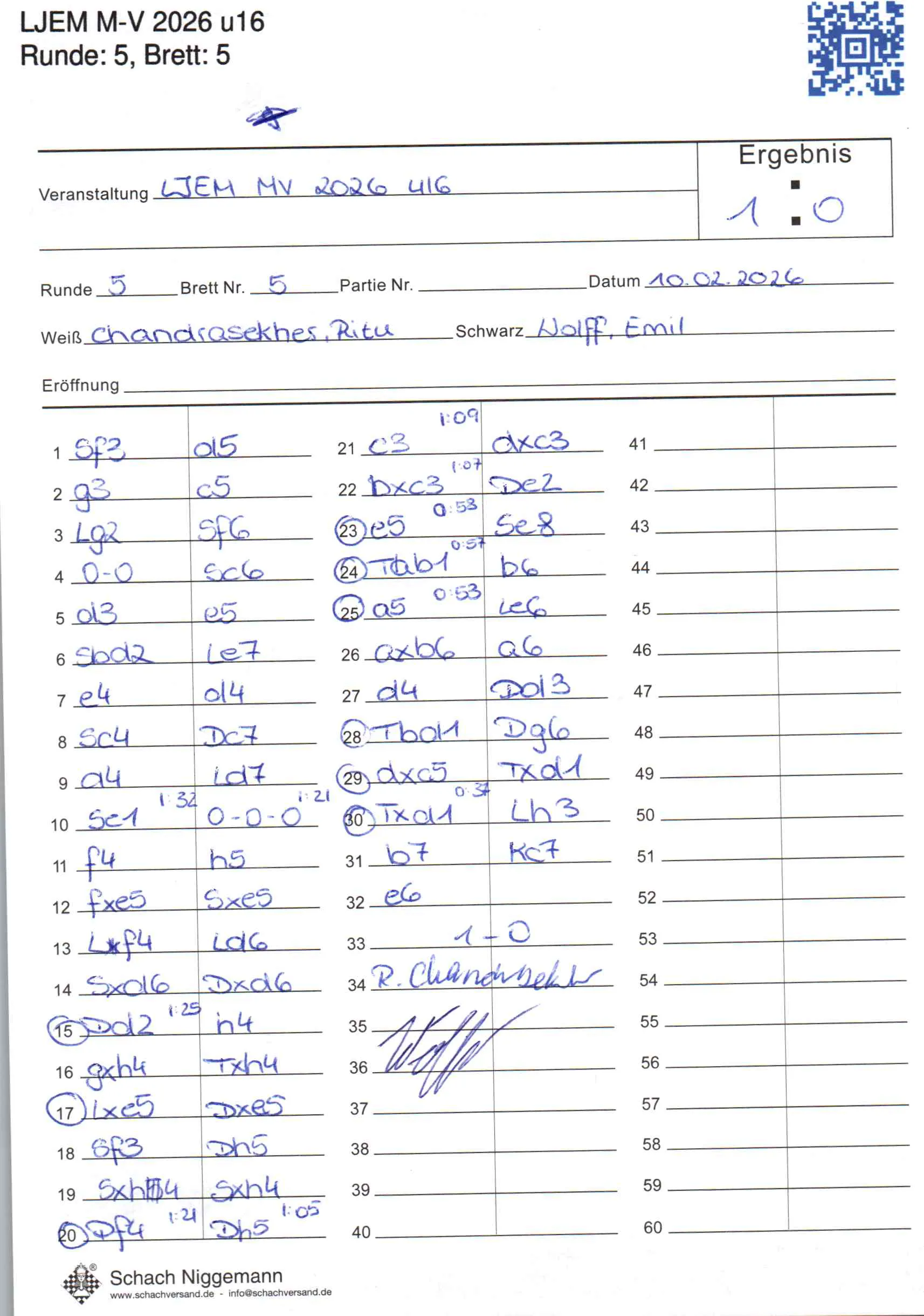 | Weiß: | Chandrasekher, Ritu | Schwarz: | Wolff, Emil |