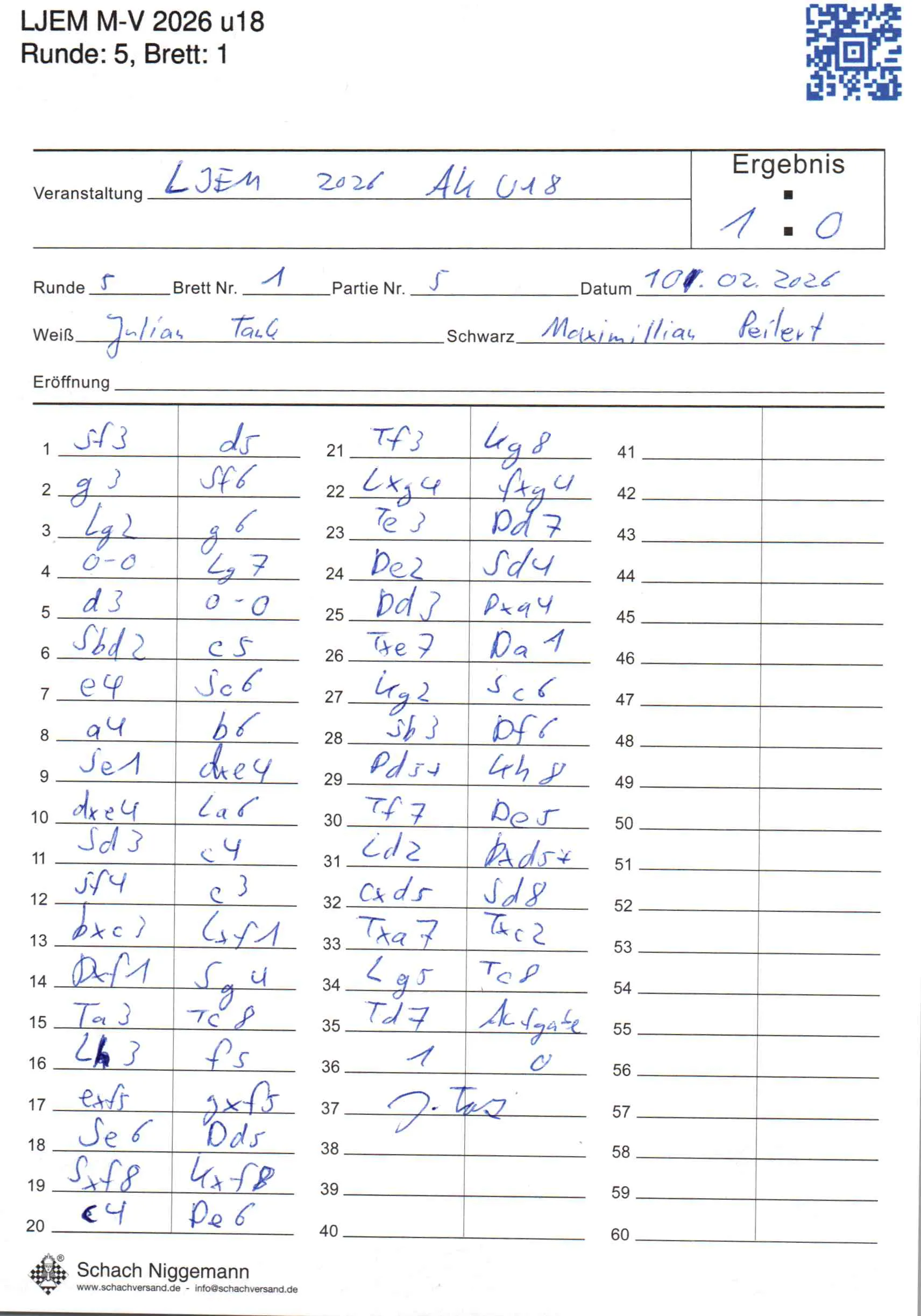 | Weiß: | Tank, Julian | Schwarz: | Peilert, Maximilian |