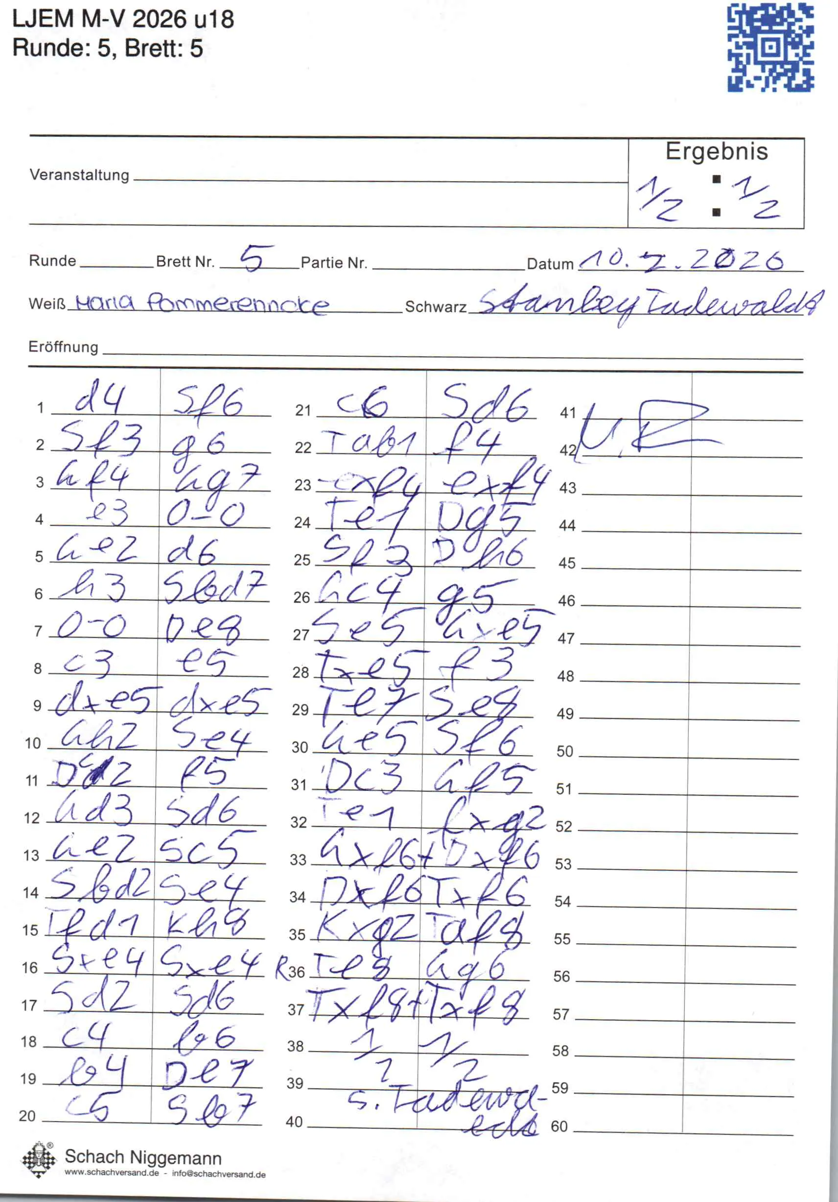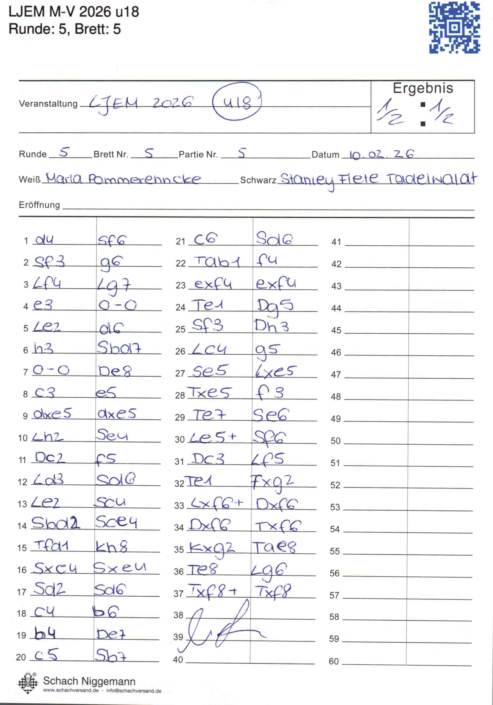 | Weiß: | Pommerehncke, Marla | Schwarz: | Tadewaldt, Stanley Fiete |
