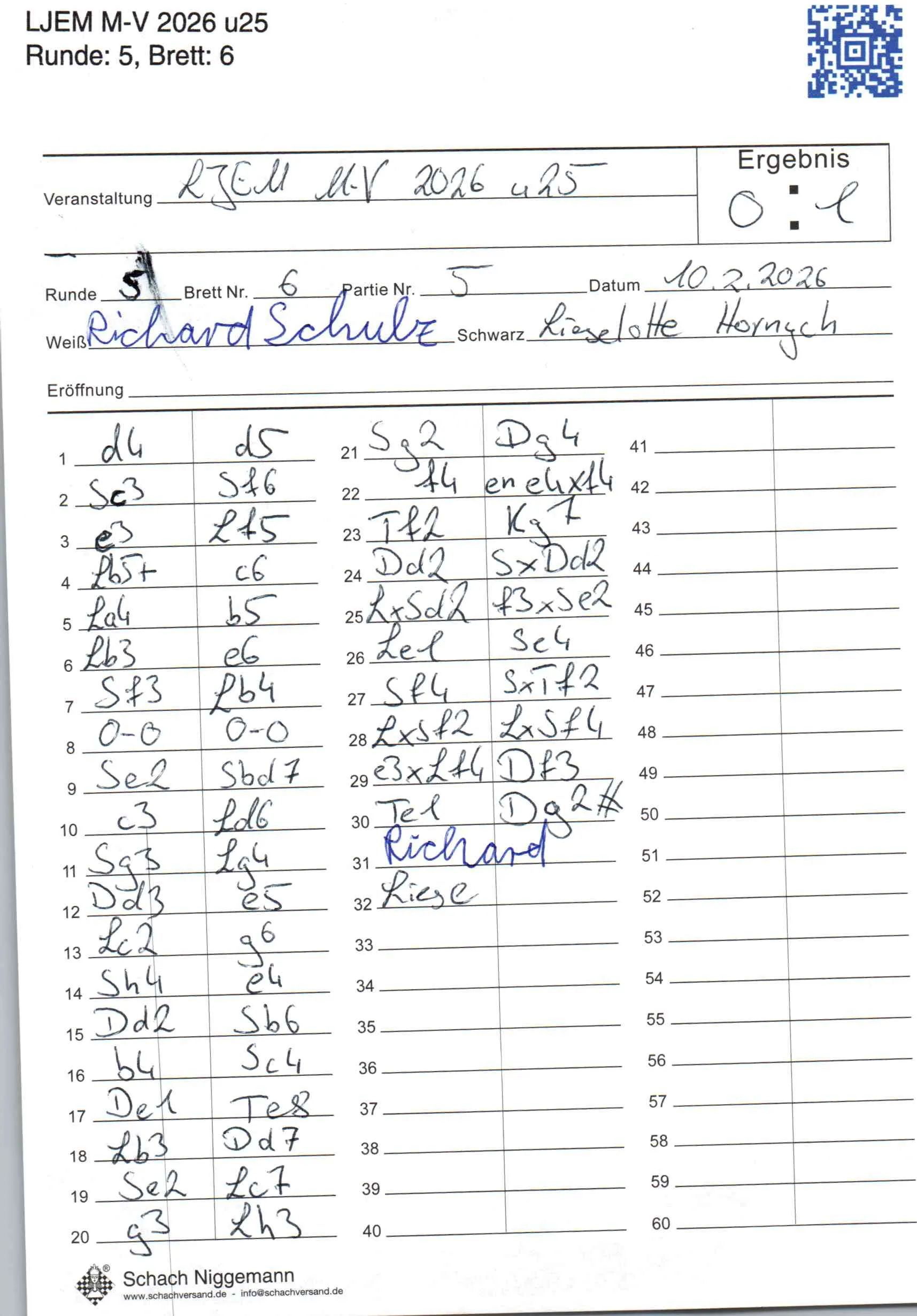 | Weiß: | Schulz, Richard Hugo | Schwarz: | Hornych, Lieselotte |