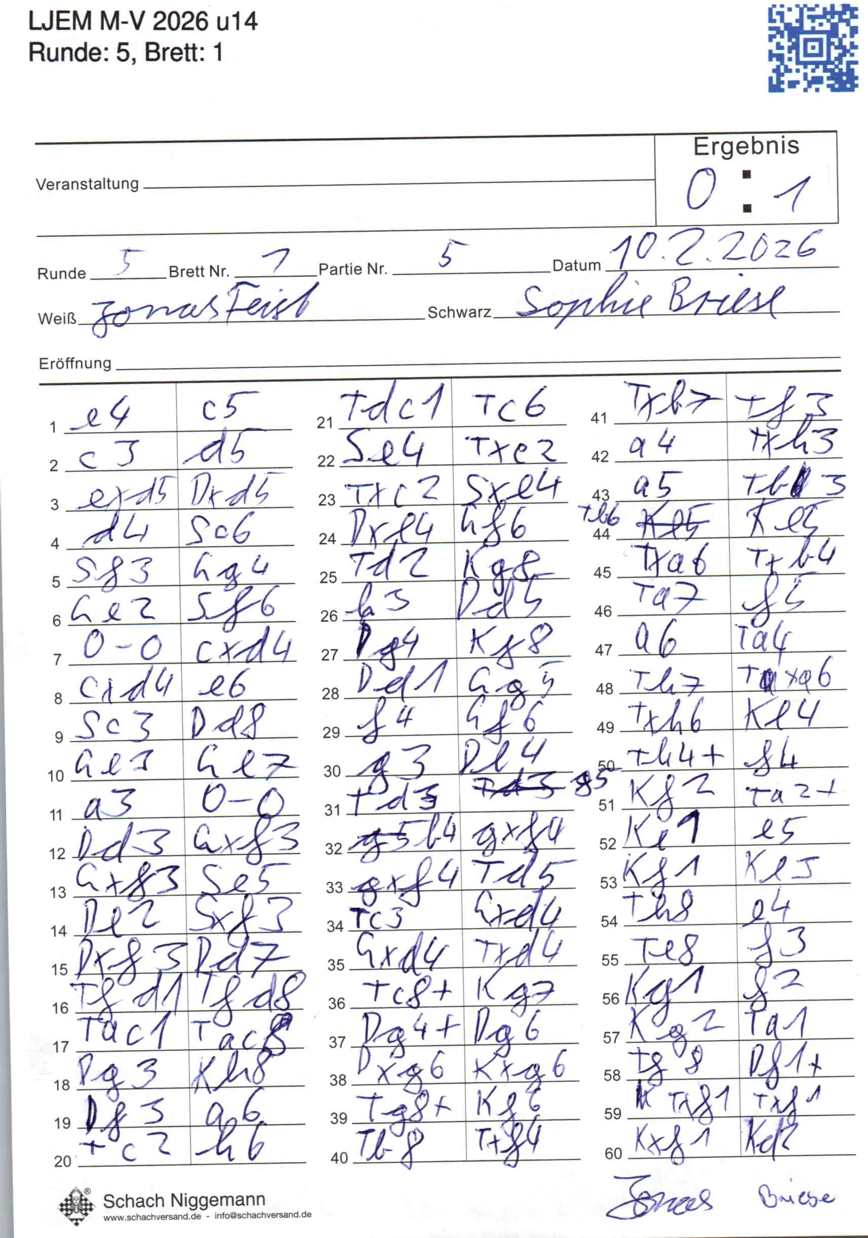| Weiß: | Feist, Jonas | Schwarz: | Briese, Sophie |