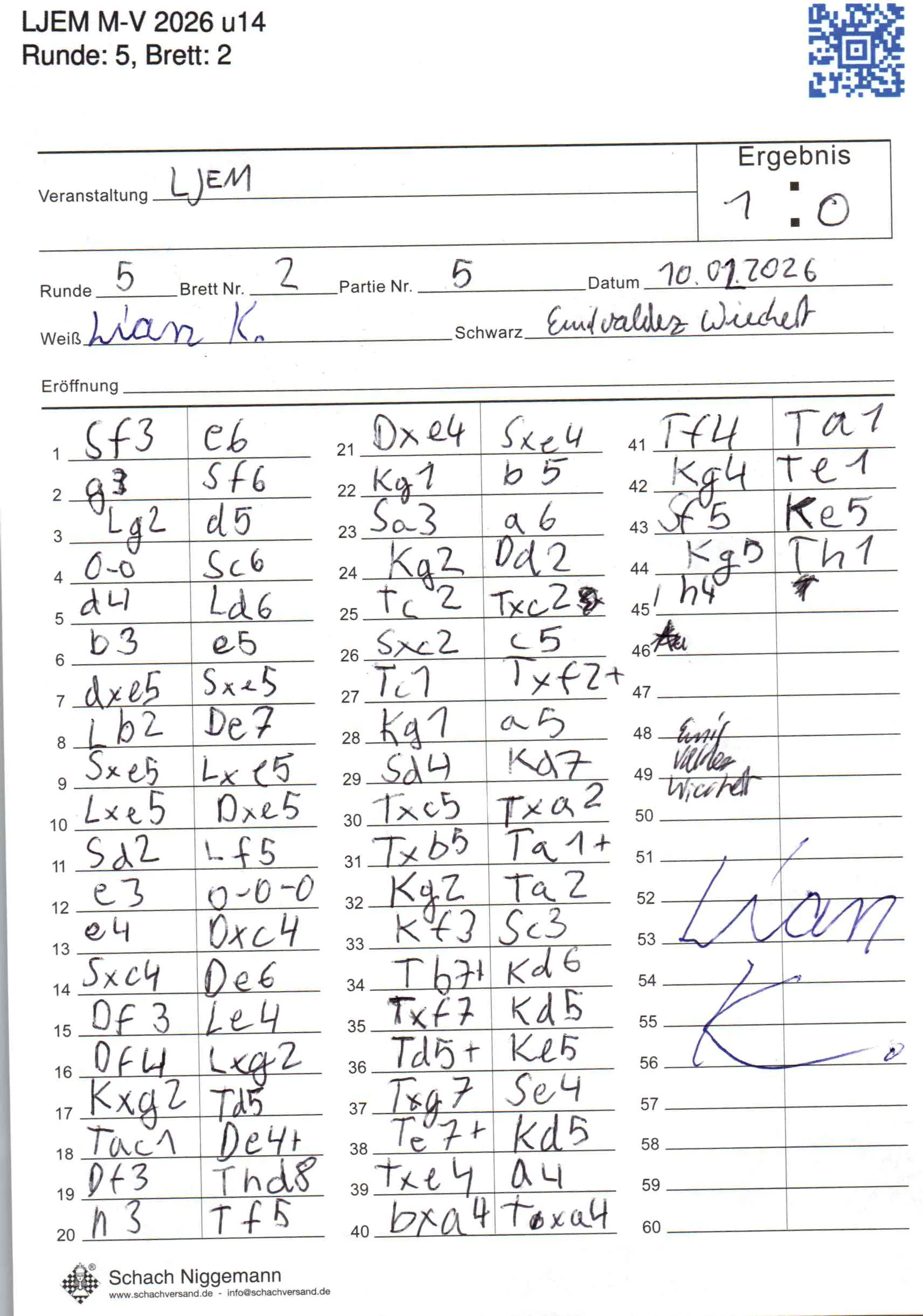 | Weiß: | König, Lian | Schwarz: | Wiechert, Emil |
