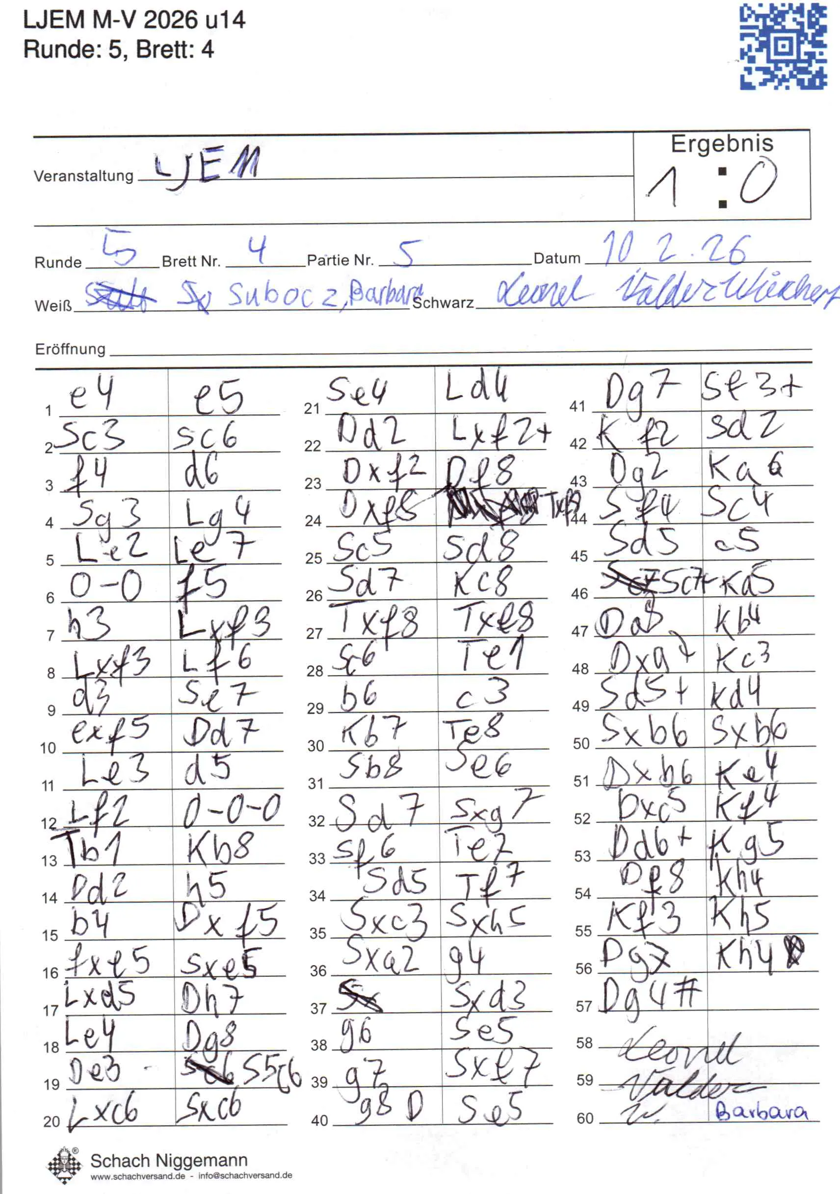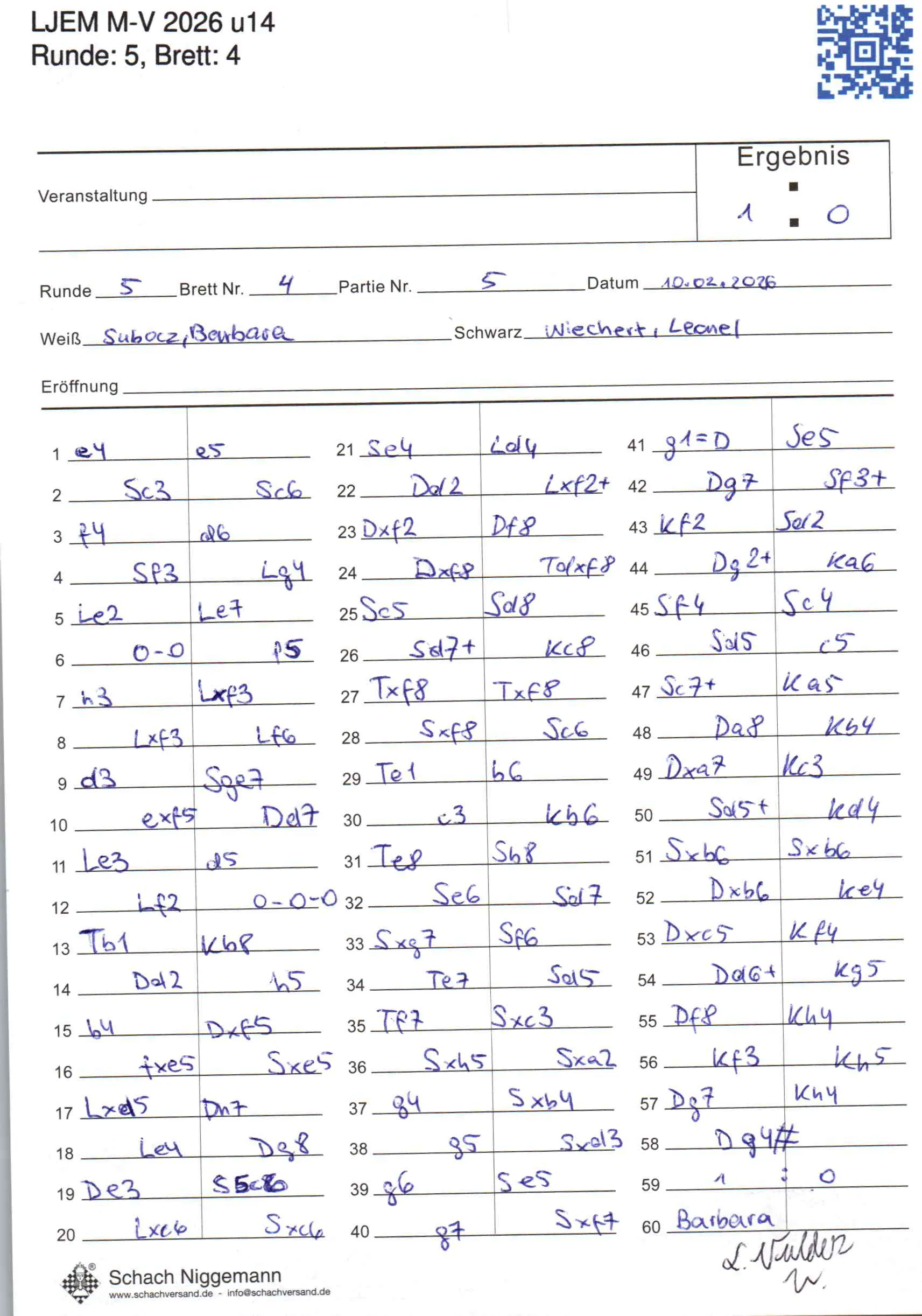 | Weiß: | Subocz, Barbara | Schwarz: | Wiechert, Leonel |
