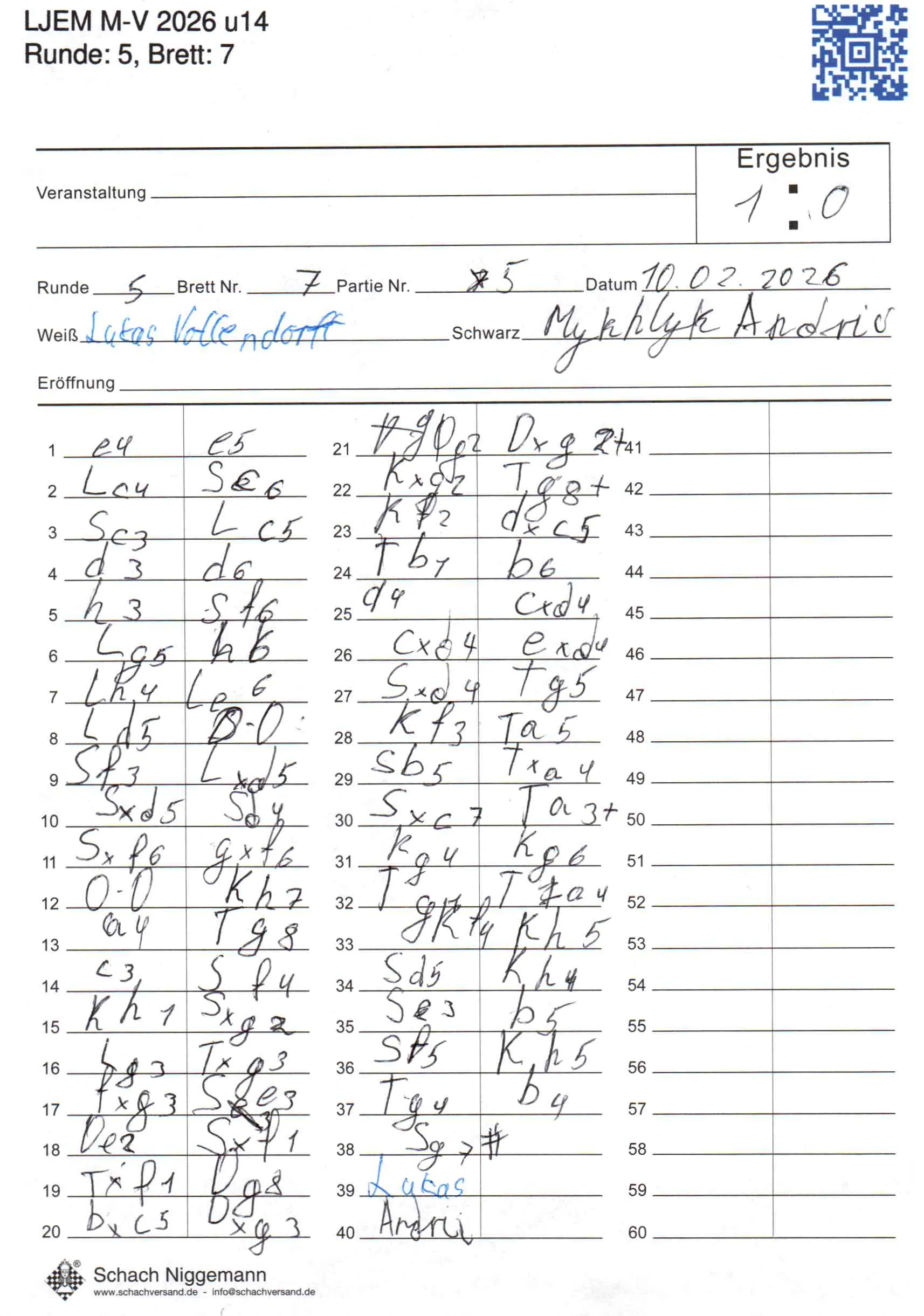 | Weiß: | Vollendorff, Lukas | Schwarz: | Mykhlyk, Andrii |
