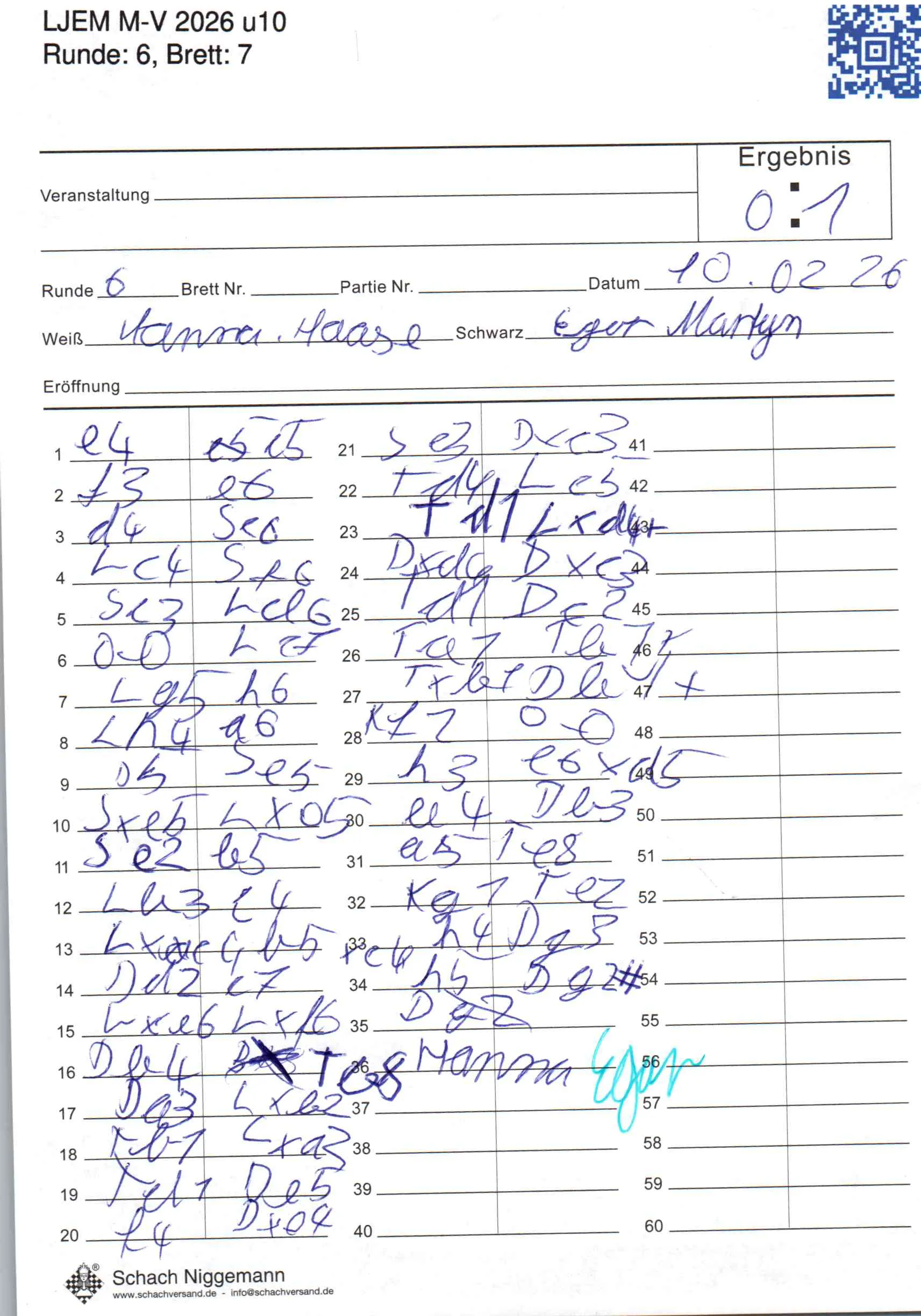 | Weiß: | Haase, Hanna | Schwarz: | Martyn, Egor |