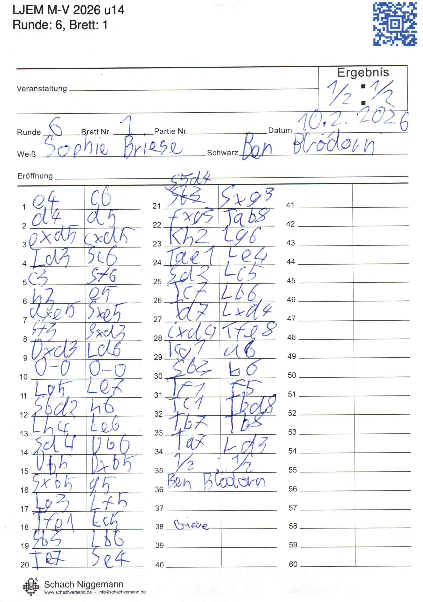 | Weiß: | Briese, Sophie | Schwarz: | Blödorn, Ben |