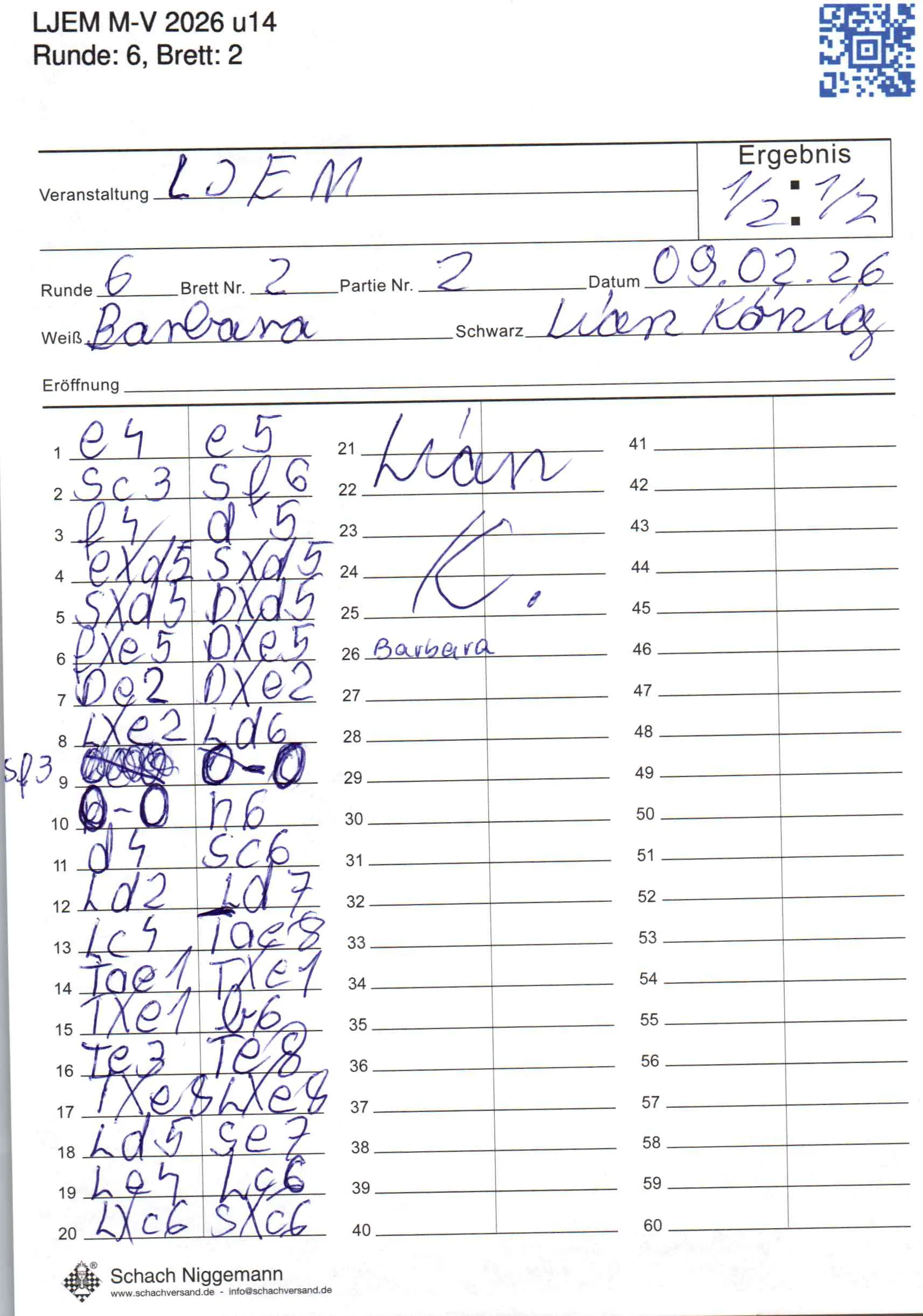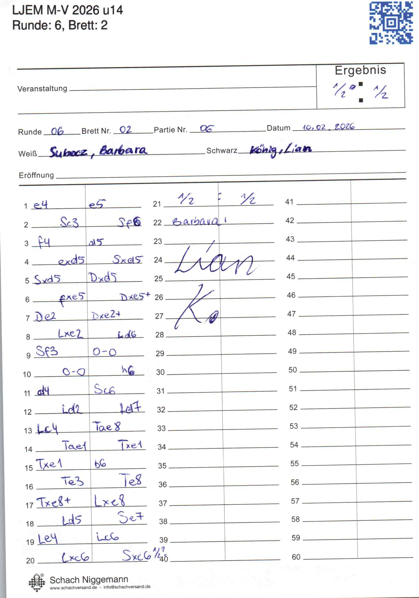 | Weiß: | Subocz, Barbara | Schwarz: | König, Lian |
