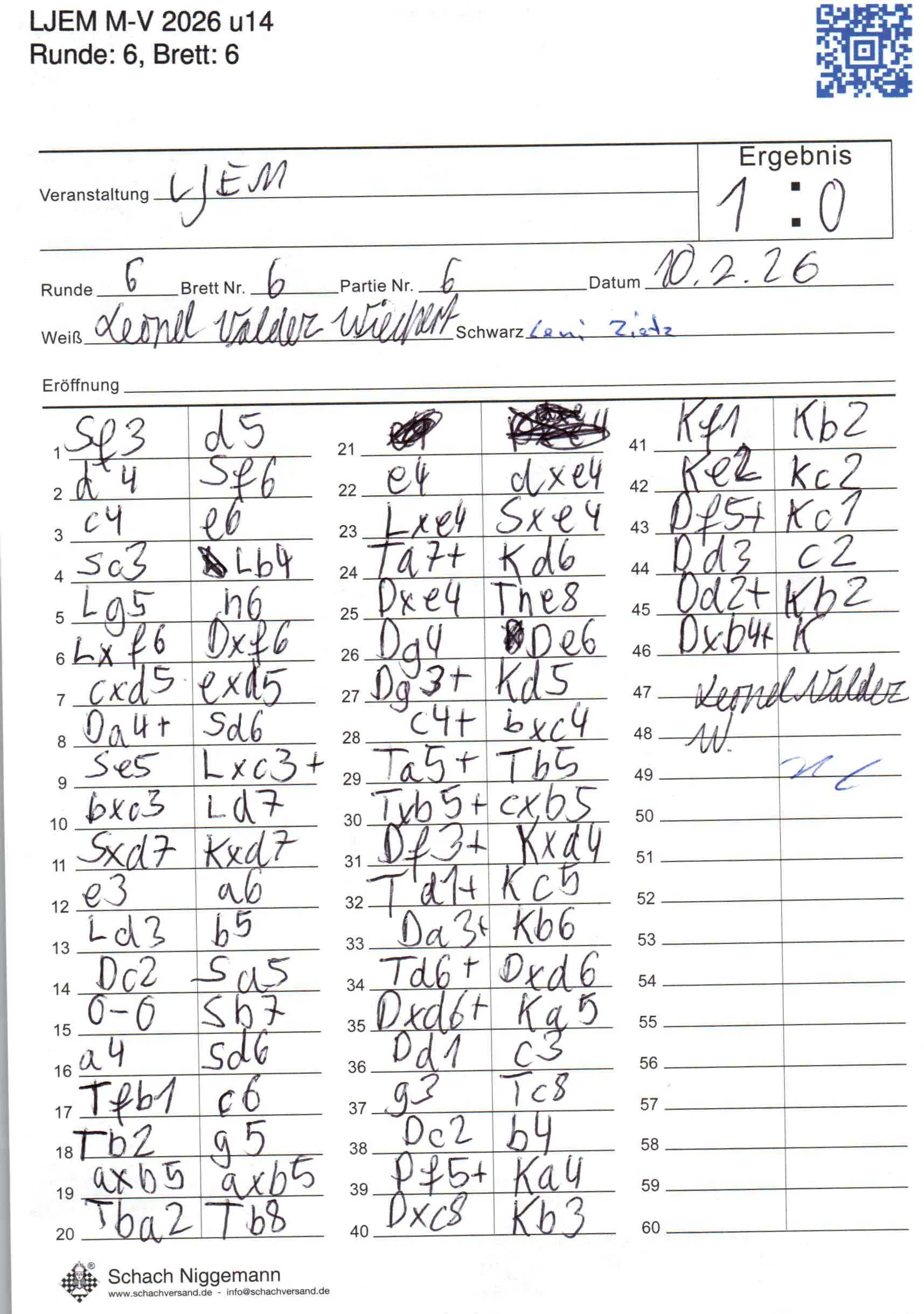 | Weiß: | Wiechert, Leonel | Schwarz: | Zietz, Leni |