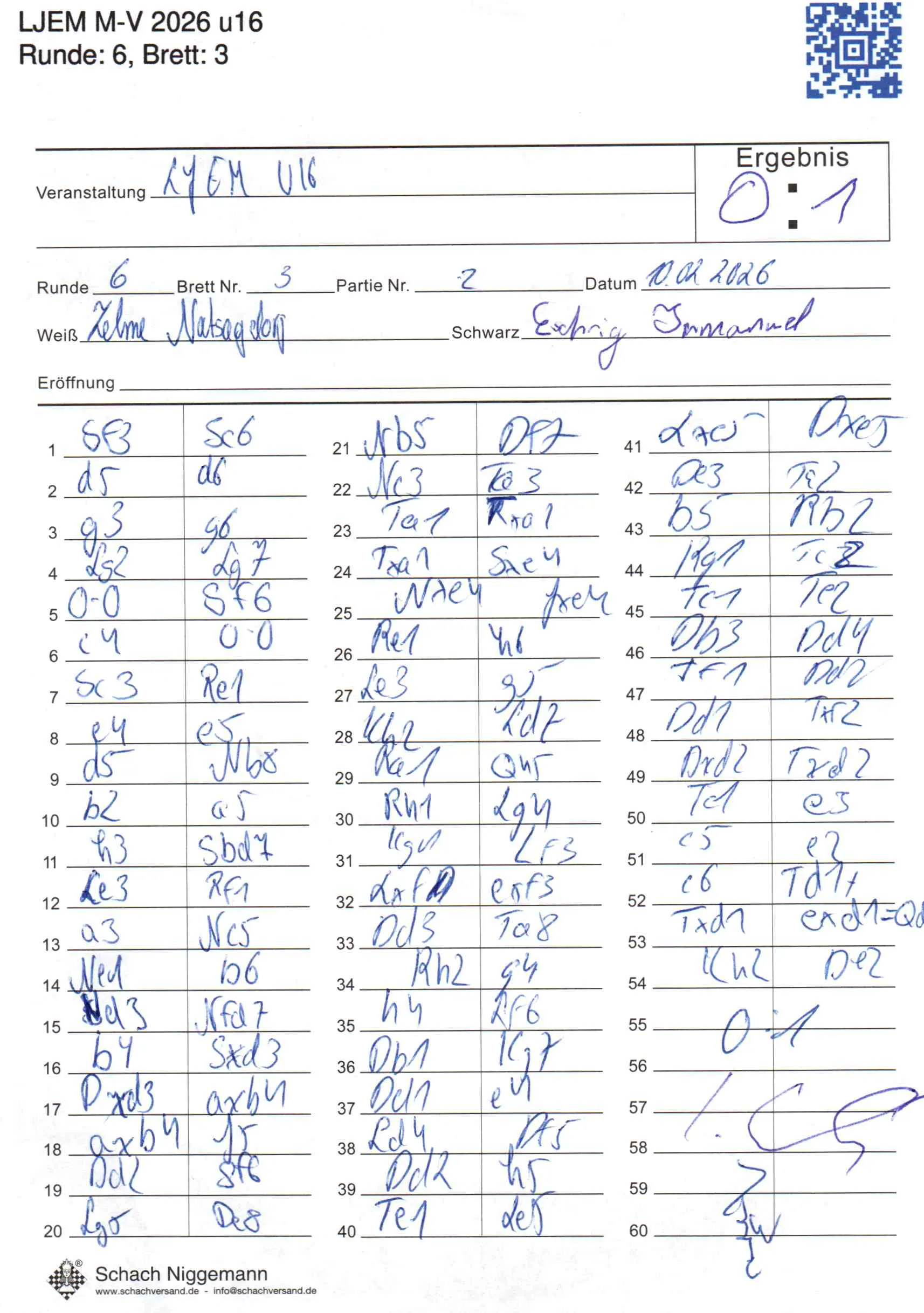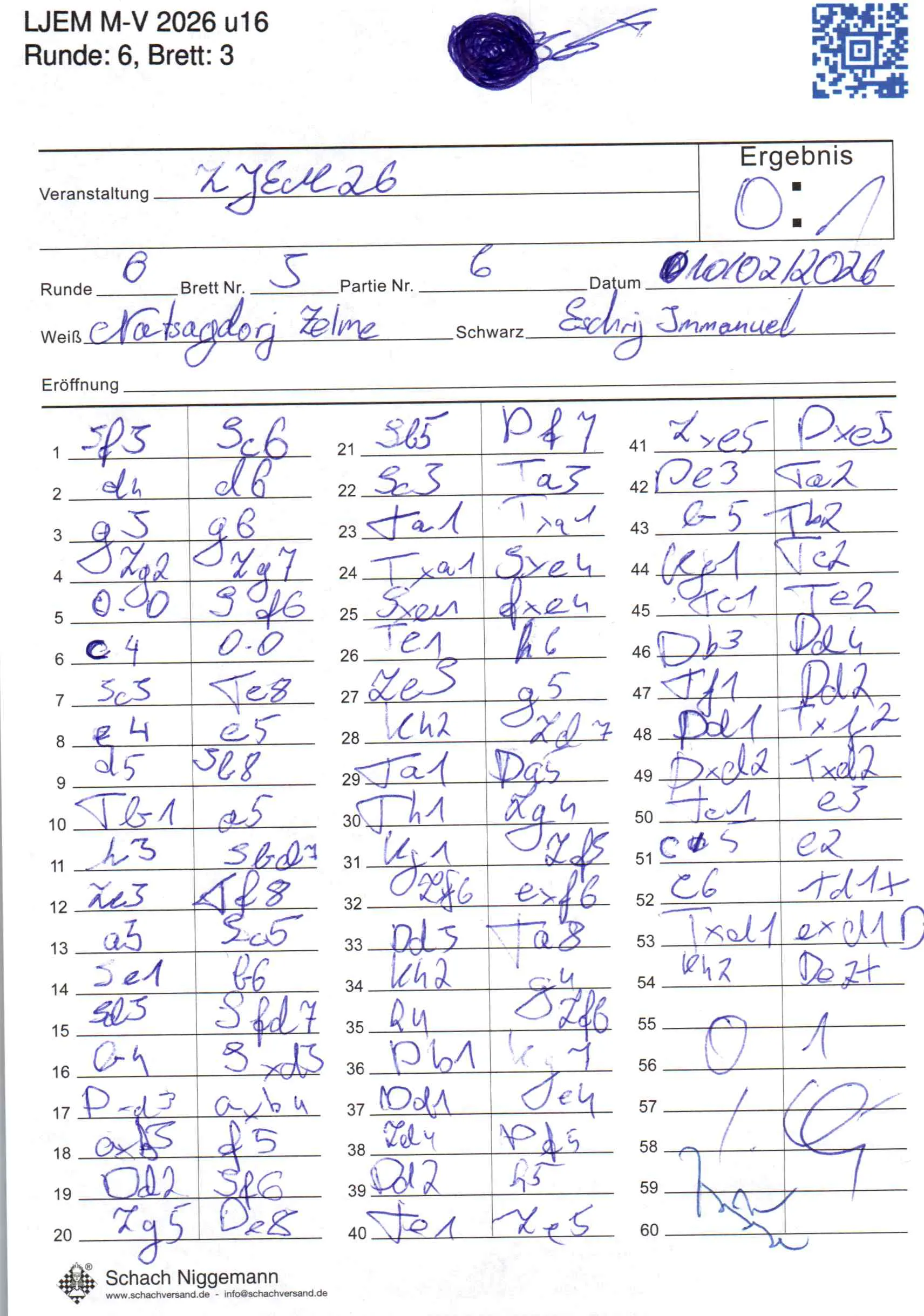 | Weiß: | Natsagdorj, Zelme | Schwarz: | Eschrig, Immanuel |