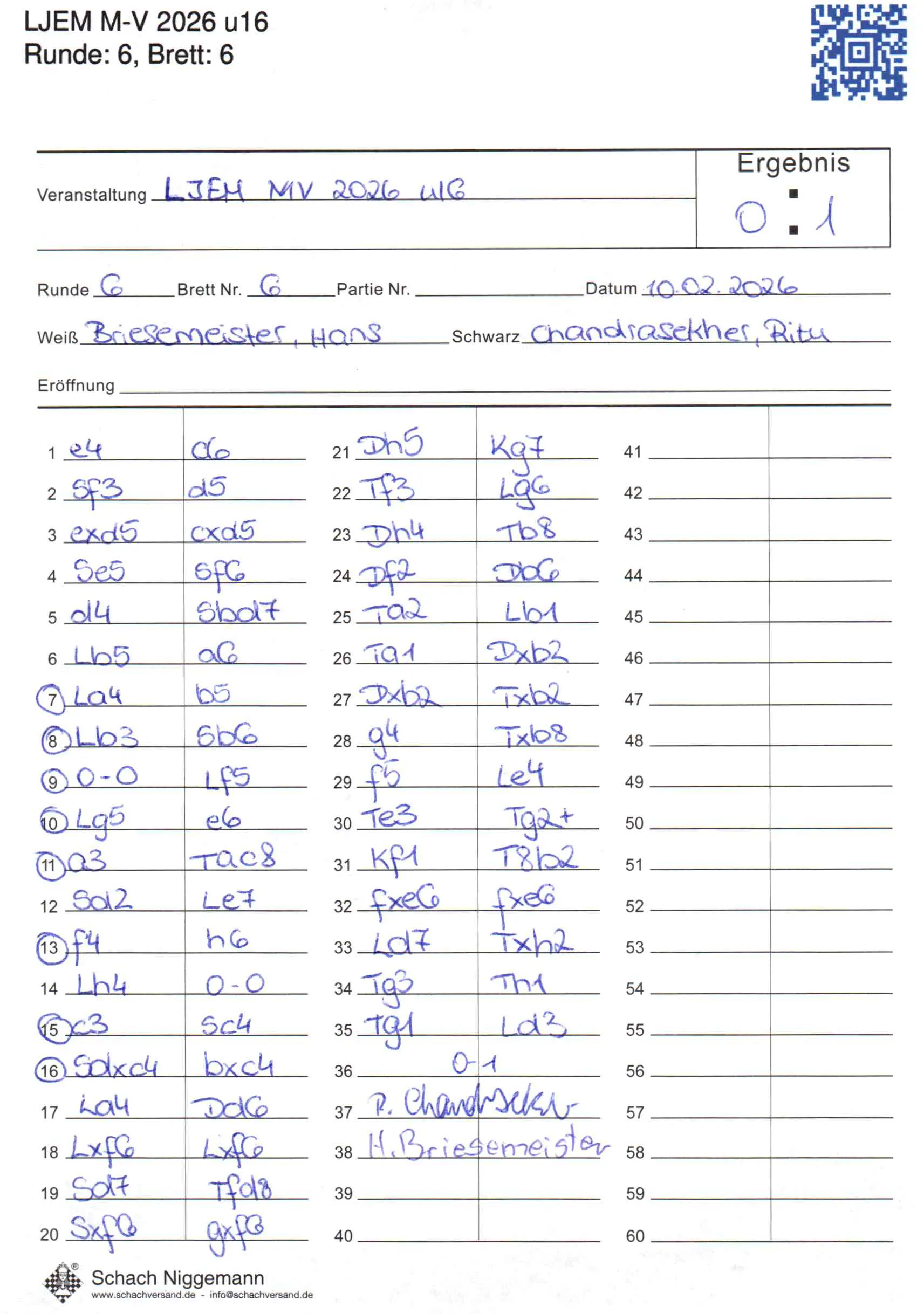 | Weiß: | Briesemeister, Hans | Schwarz: | Chandrasekher, Ritu |