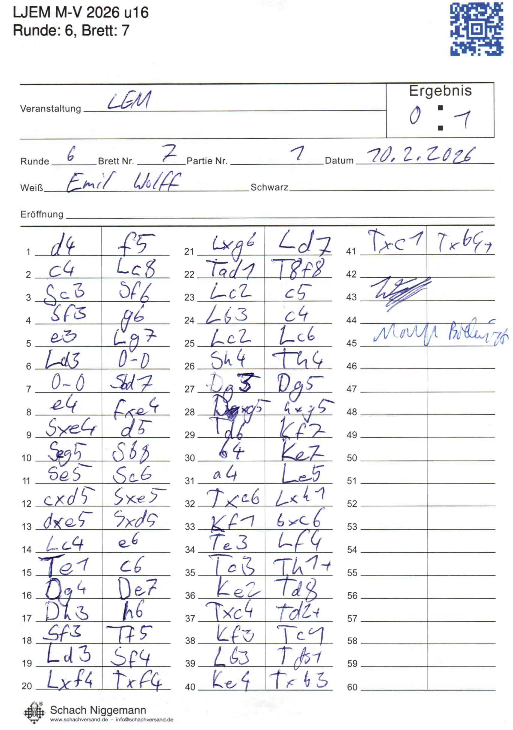 | Weiß: | Wolff, Emil | Schwarz: | Bielewicz, Marek |