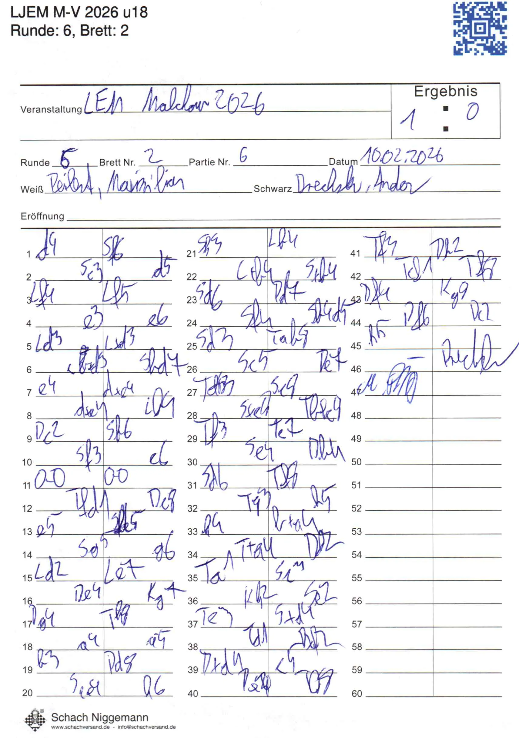 | Weiß: | Peilert, Maximilian | Schwarz: | Drechsler, Andor |