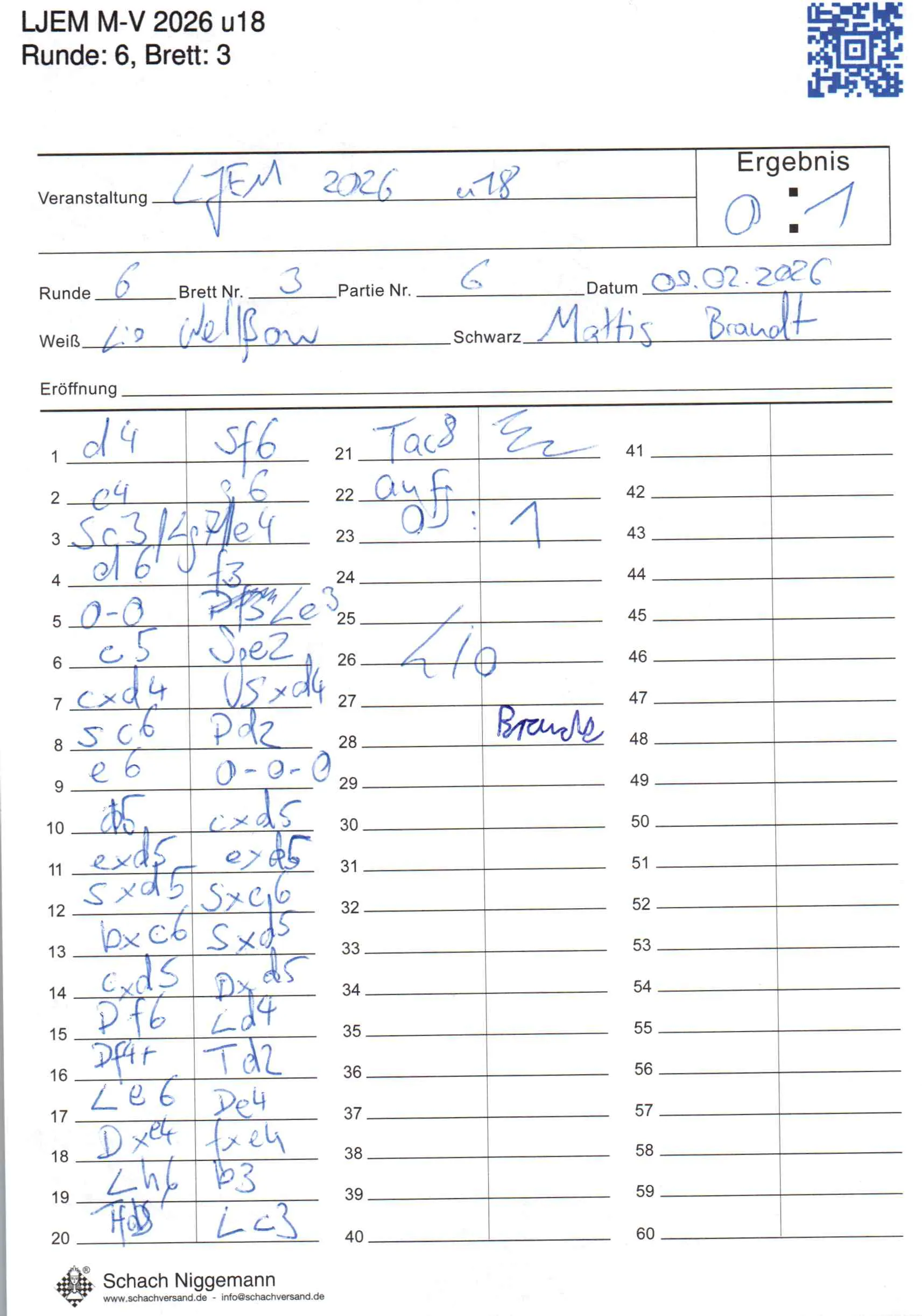 | Weiß: | Wellßow, Lio Keanu | Schwarz: | Brandt, Mattis |