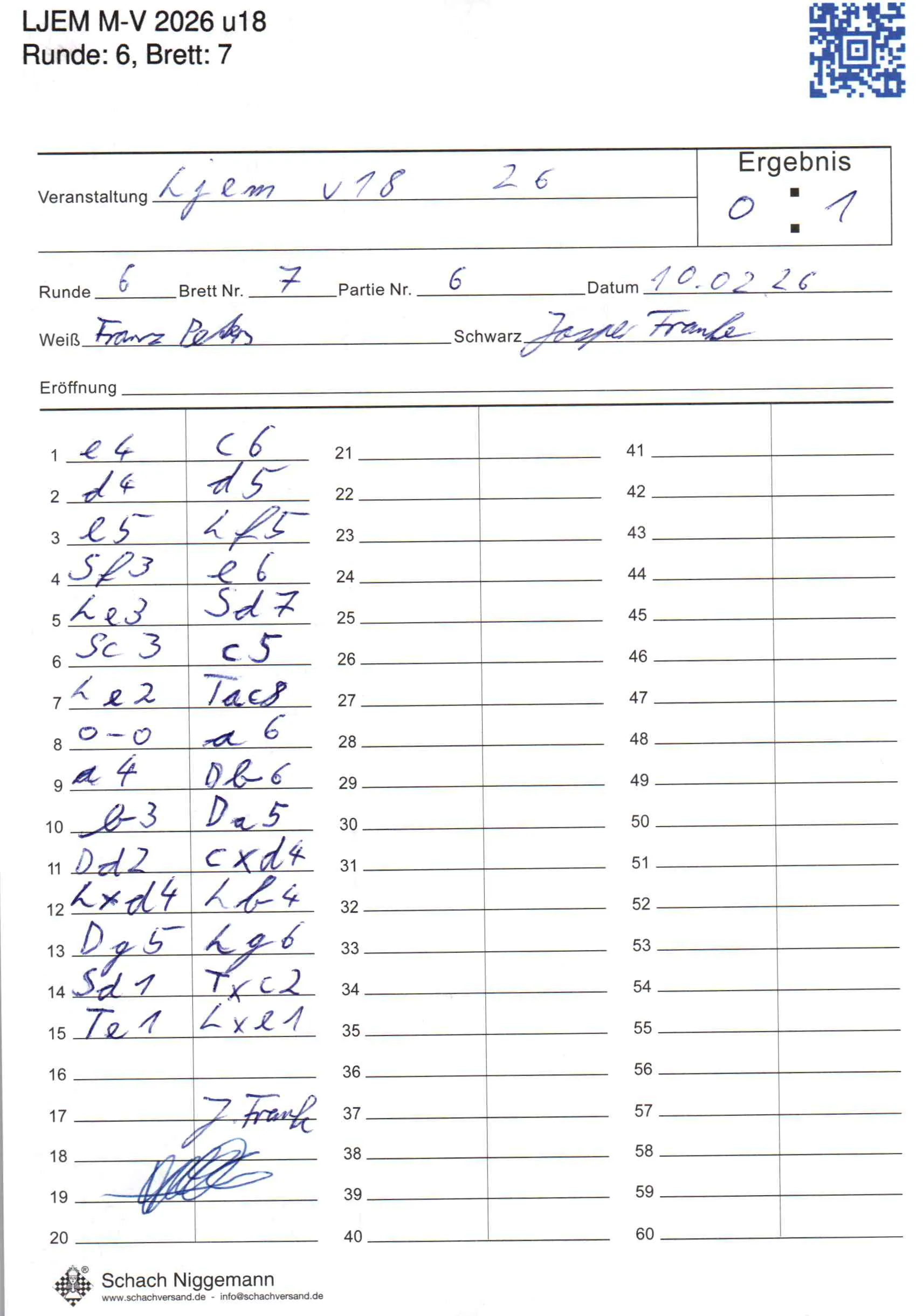 | Weiß: | Peters, Franz | Schwarz: | Franke, Jasper |