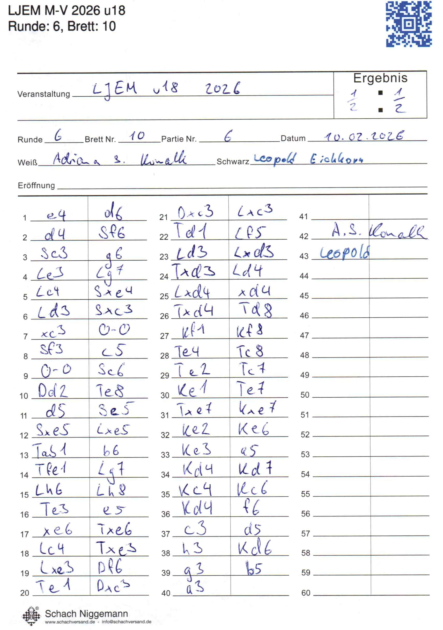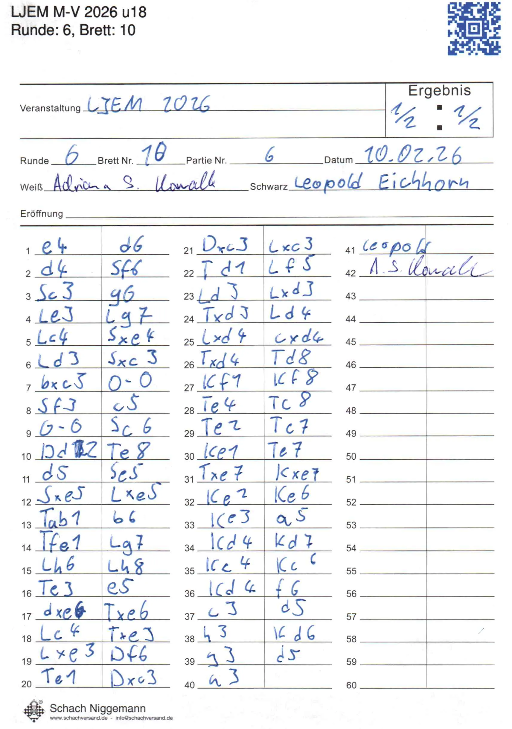 | Weiß: | Kowalk, Adriana Sophie | Schwarz: | Eichhorn, Leopold |