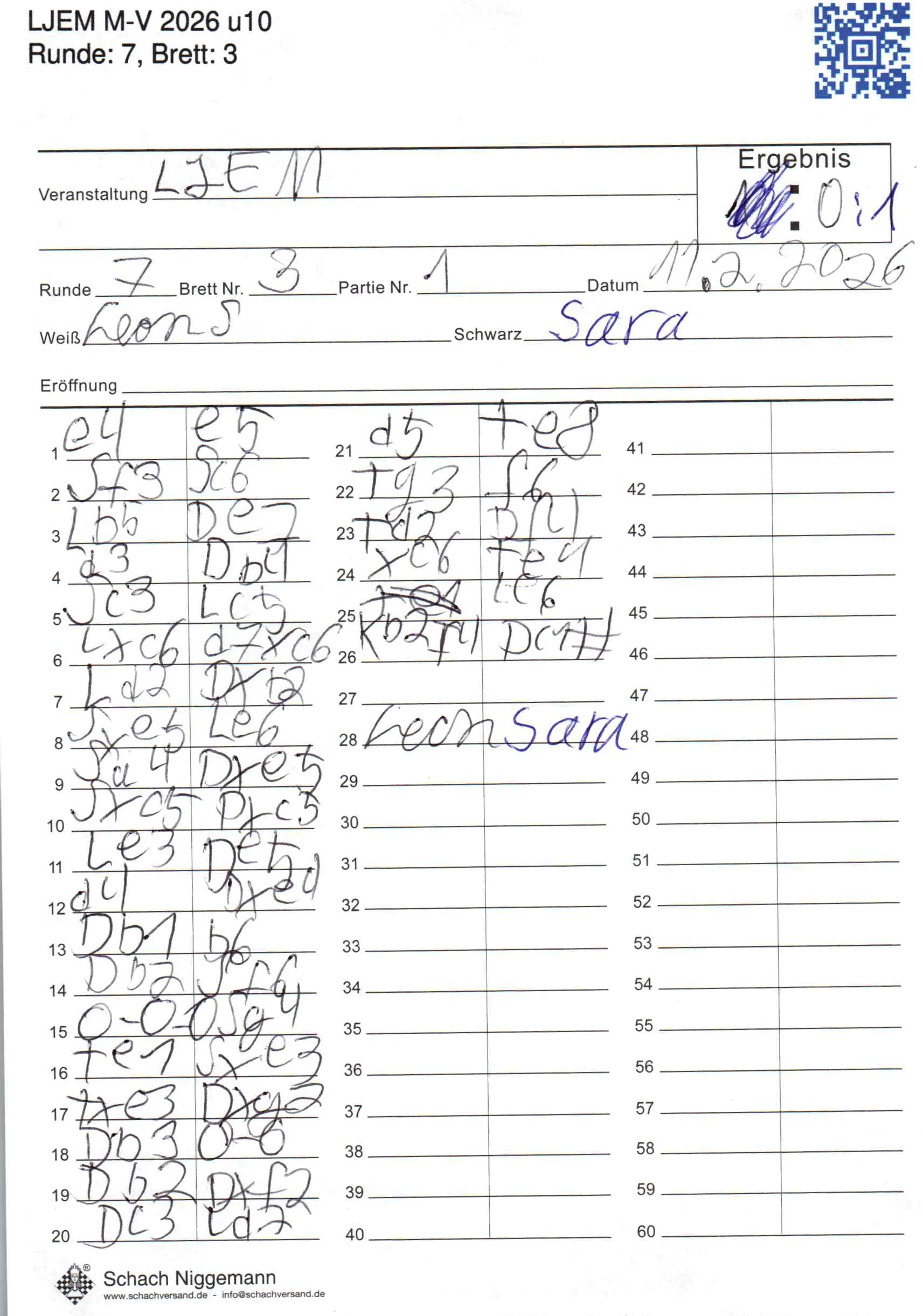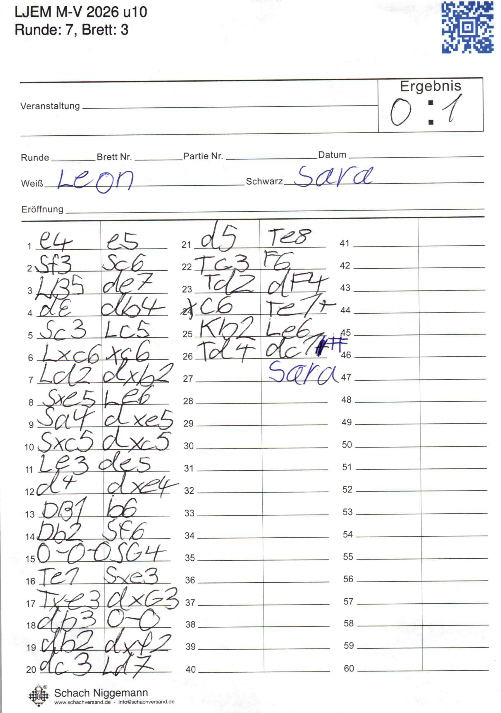 | Weiß: | Strobel, Leon | Schwarz: | Zelenin, Sara |