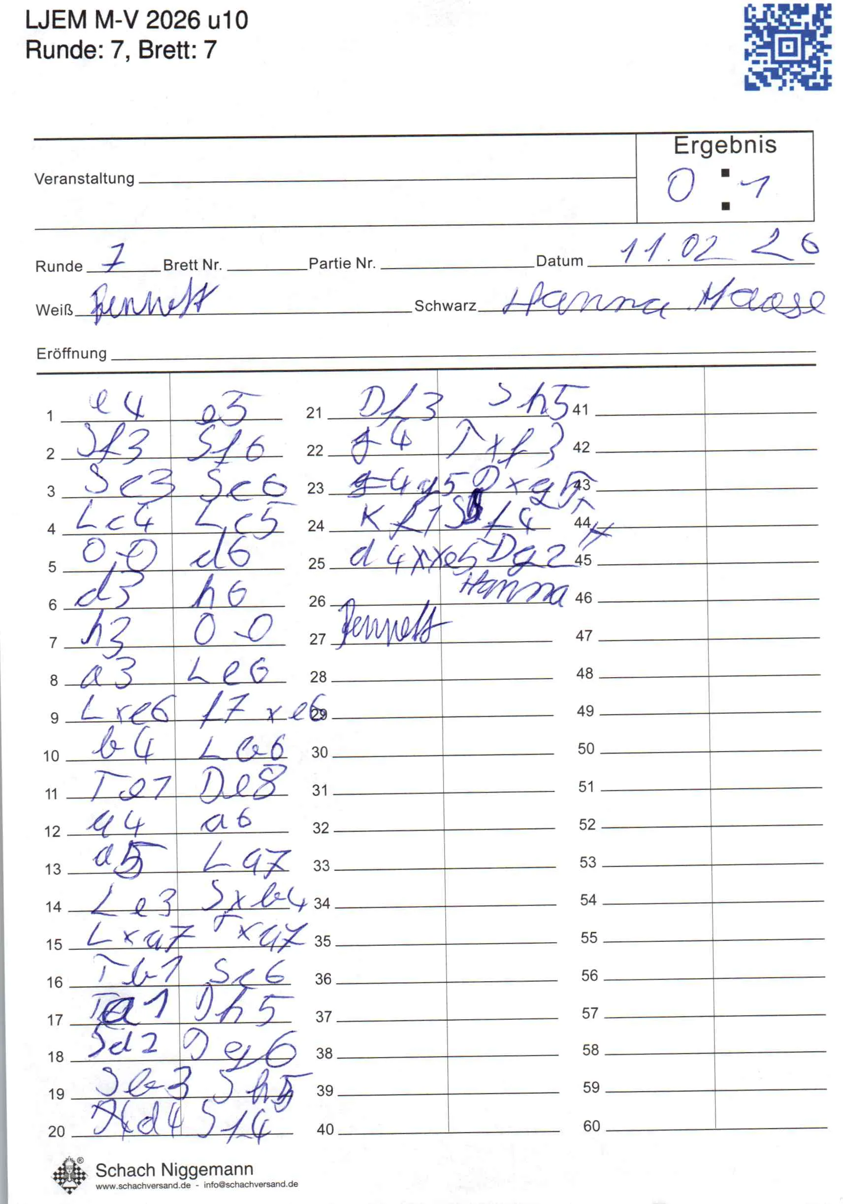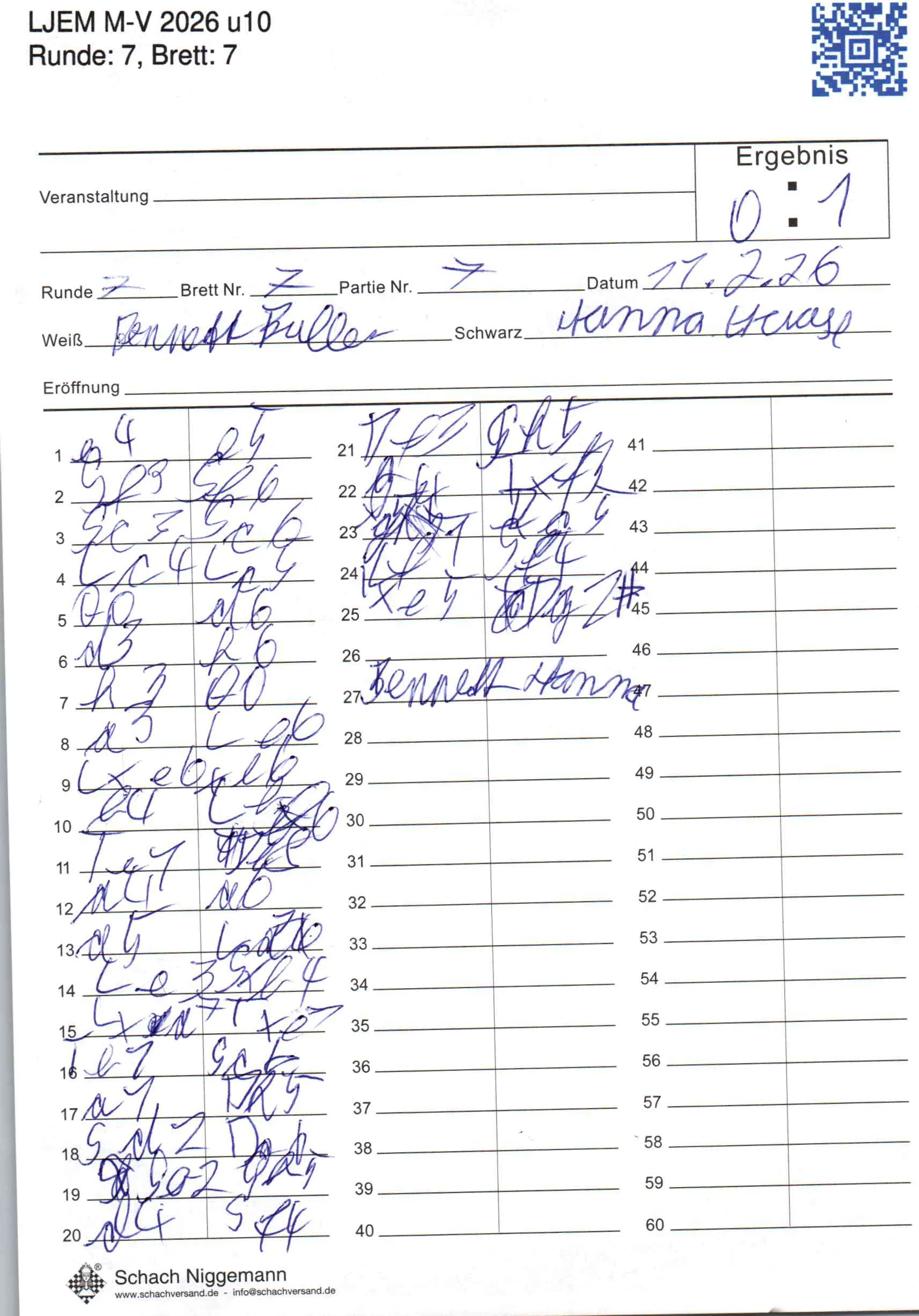 | Weiß: | Buller, Bennett | Schwarz: | Haase, Hanna |