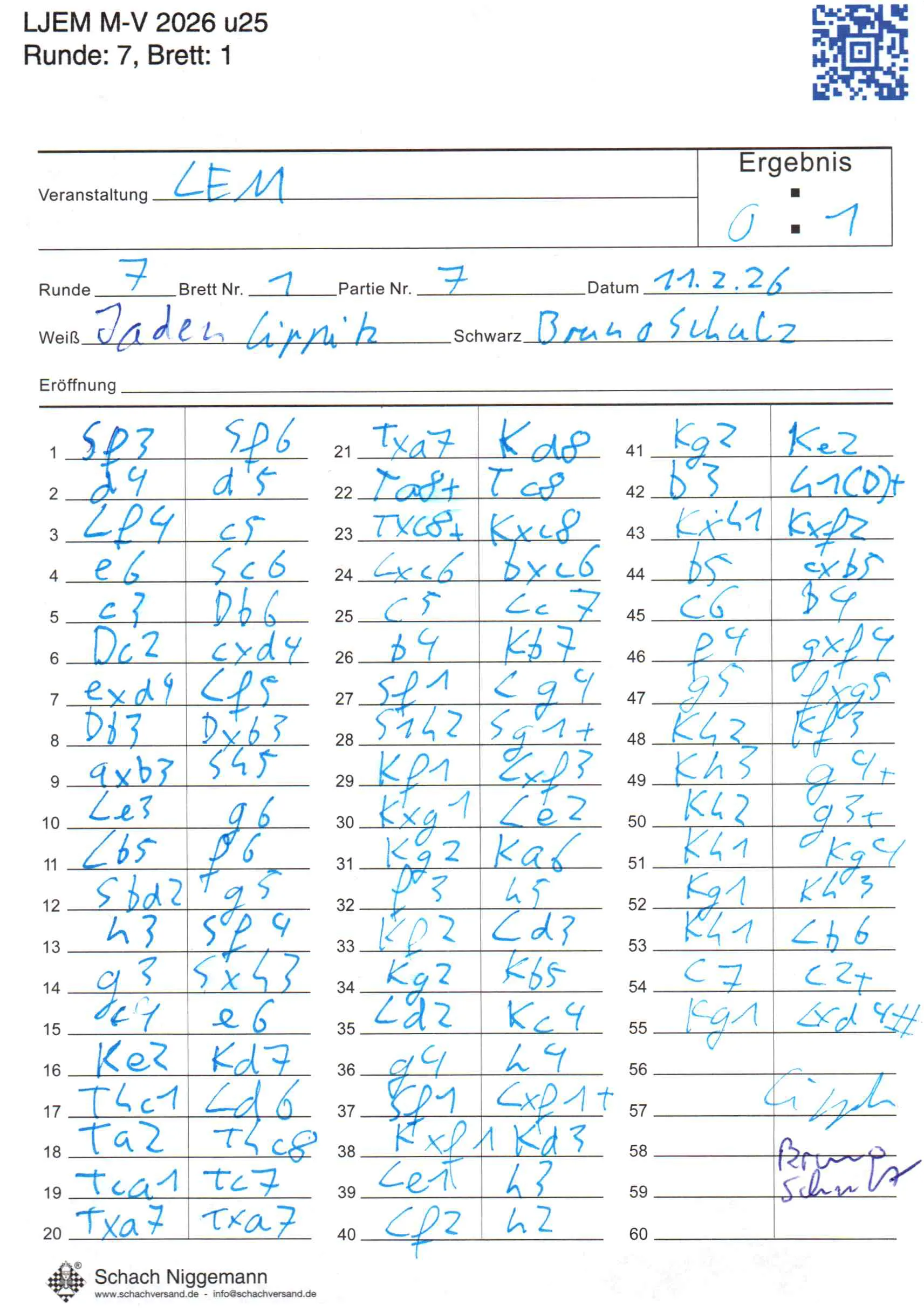 | Weiß: | Lippitz, Jaden | Schwarz: | Schulz, Bruno Andreas |
