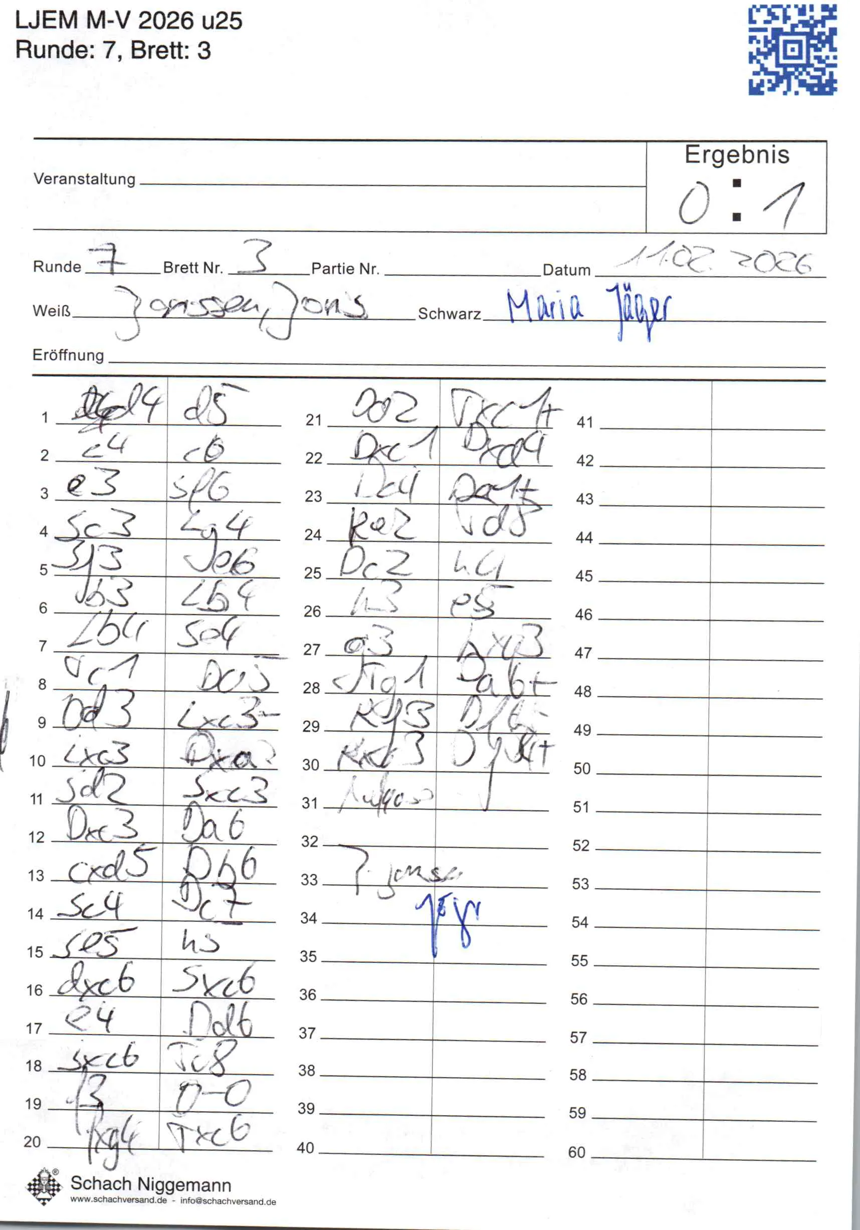 | Weiß: | Janssen, Joris Frederik | Schwarz: | Jäger, Maria |