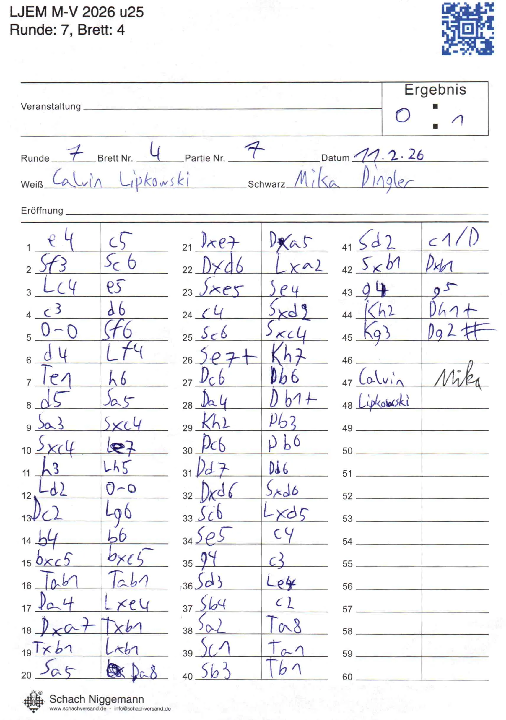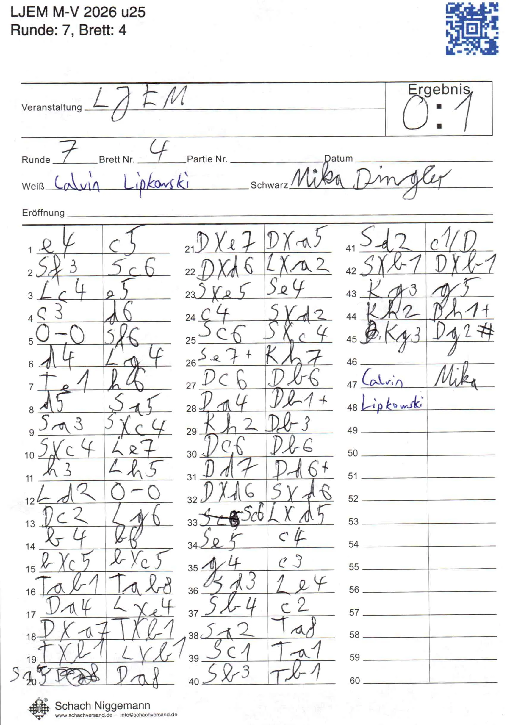 | Weiß: | Lipkowski, Calvin | Schwarz: | Dingler, Mika |
