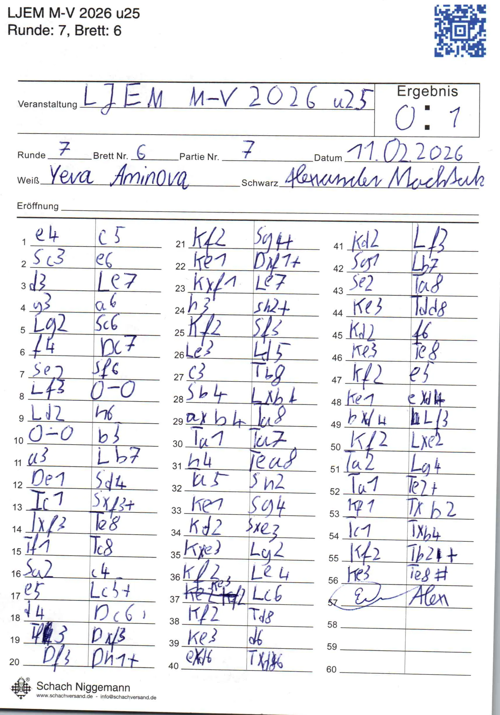 | Weiß: | Aminova, Yeva | Schwarz: | Mochtak, Alexander |
