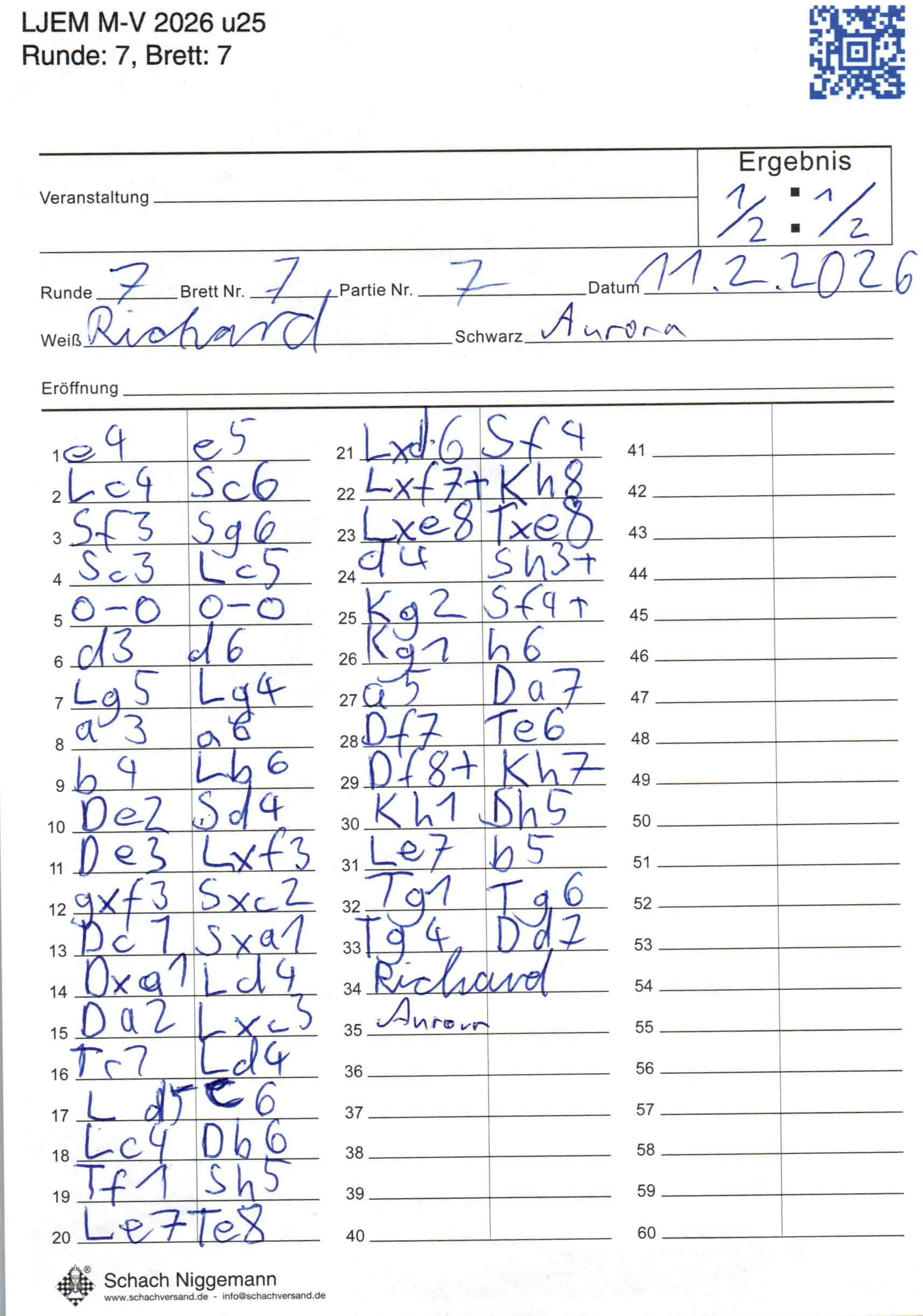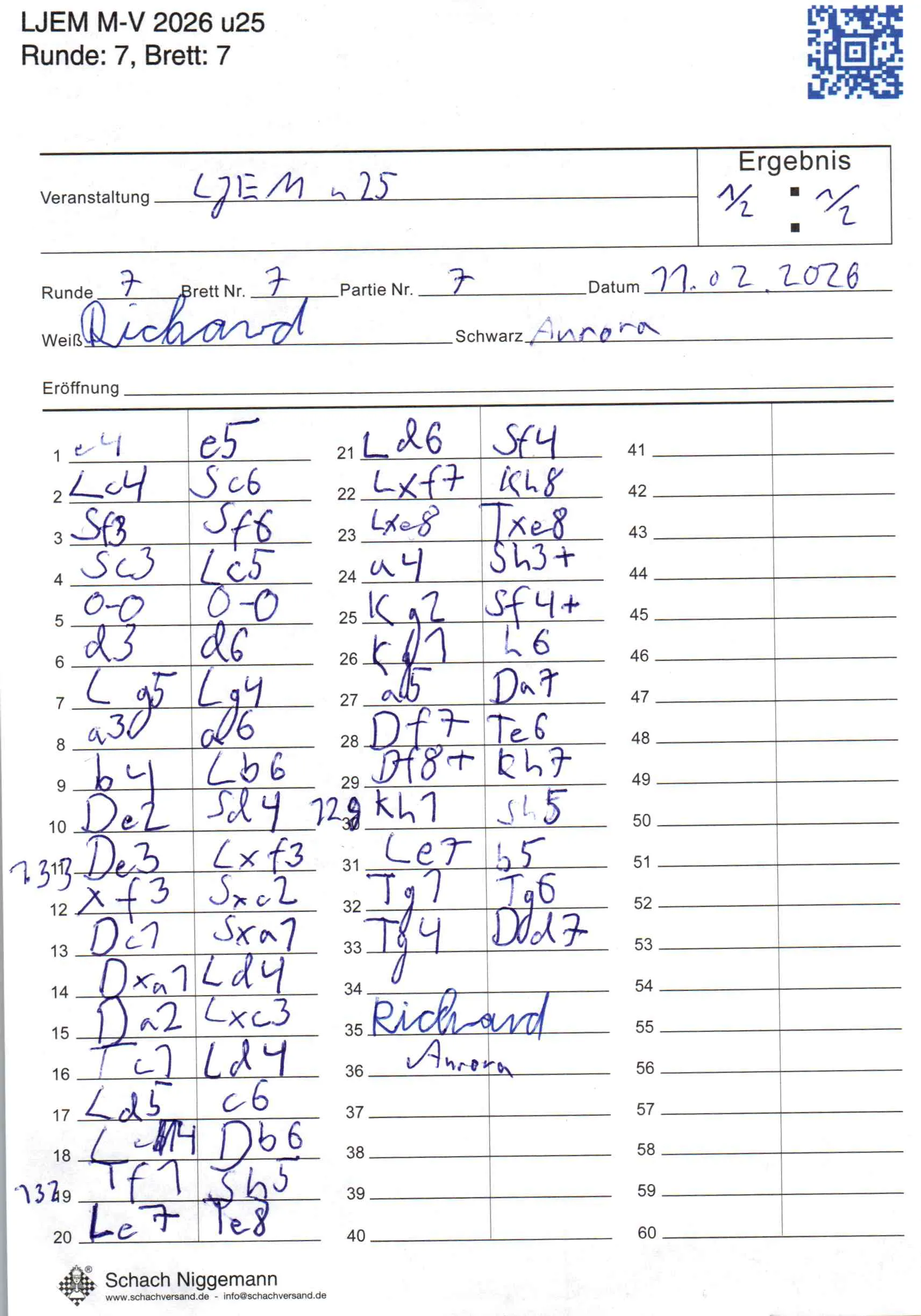 | Weiß: | Schulz, Richard Hugo | Schwarz: | Kowalk, Aurora Marie |