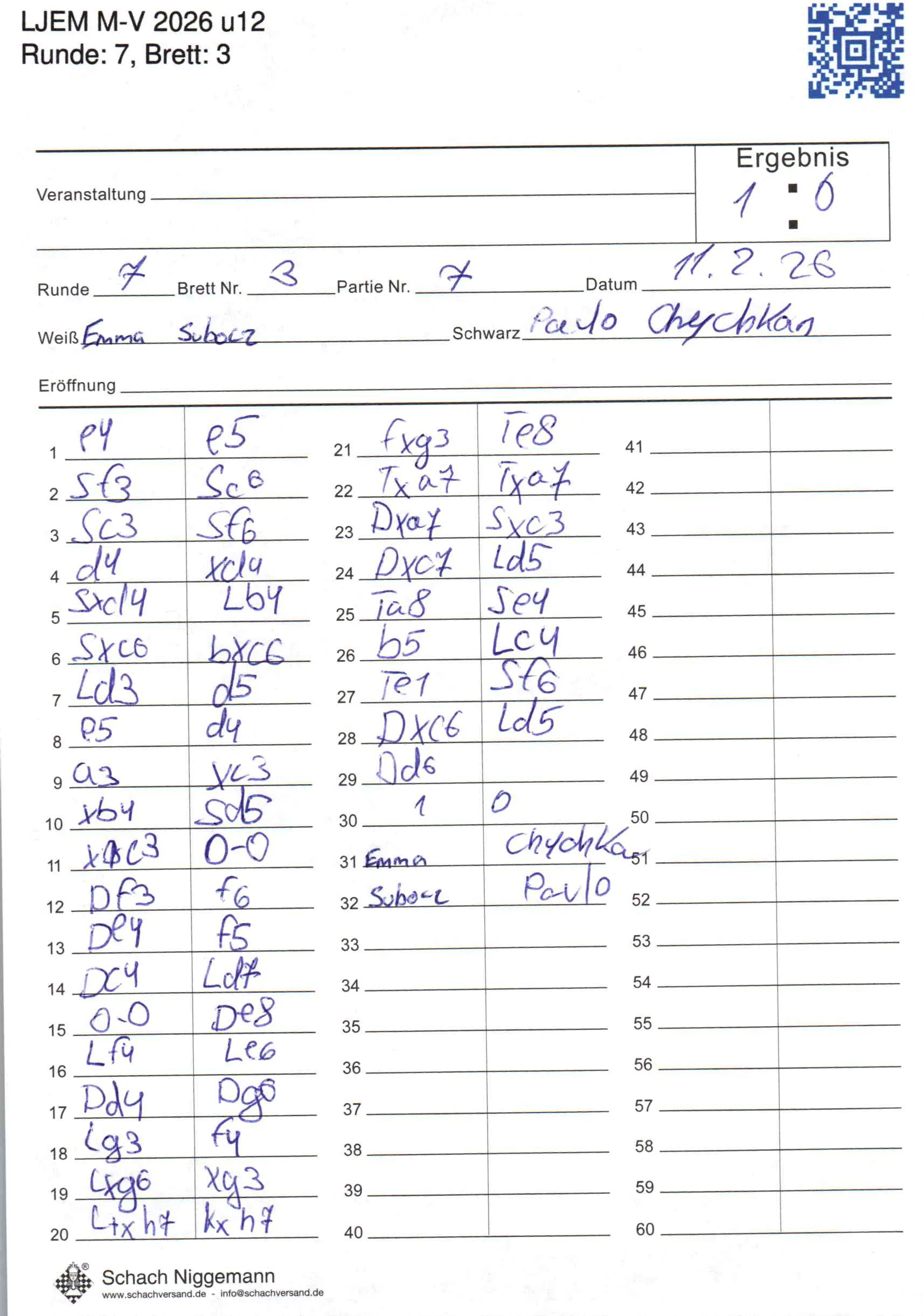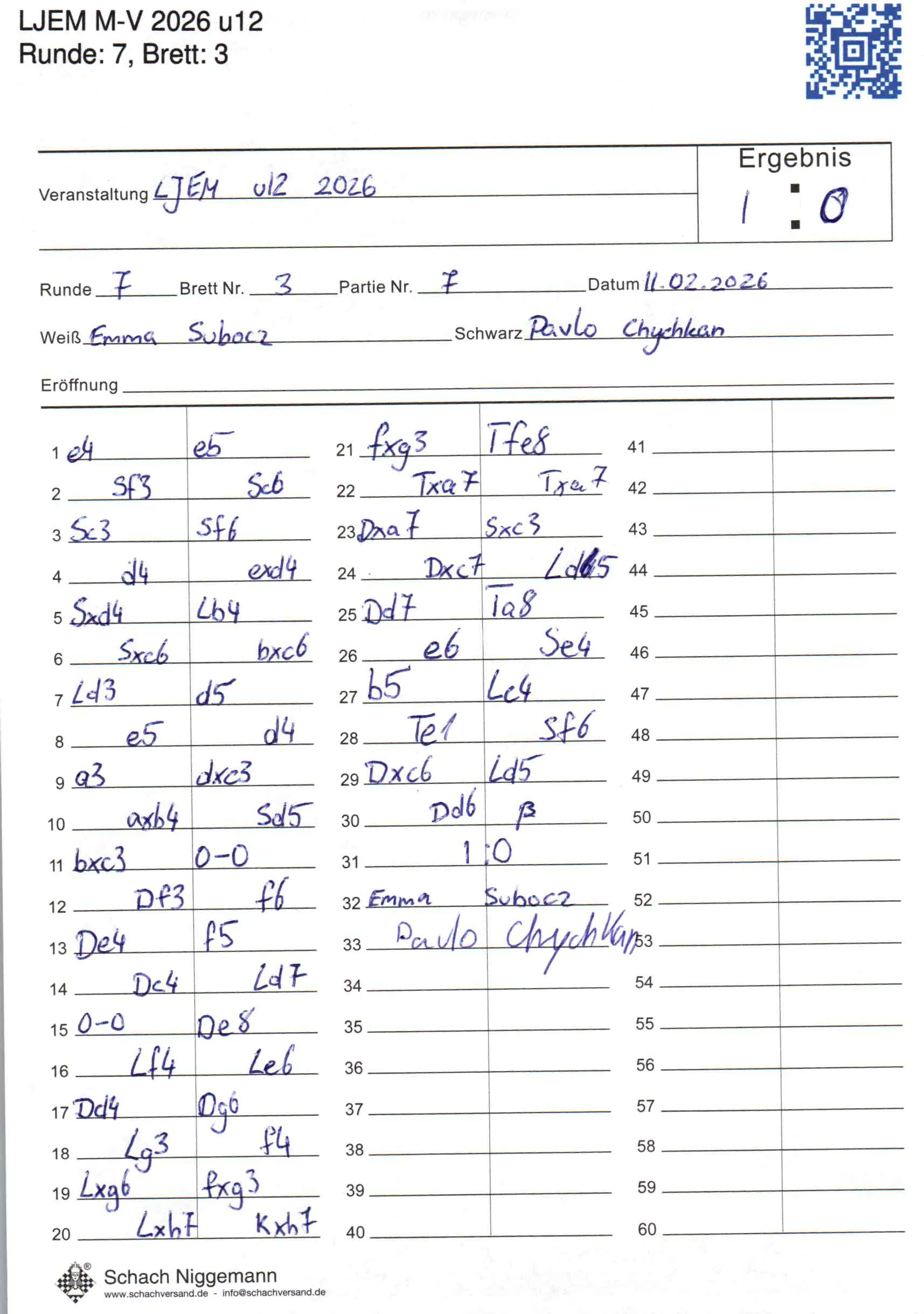 | Weiß: | Subocz, Emma | Schwarz: | Chychkan, Pavlo |