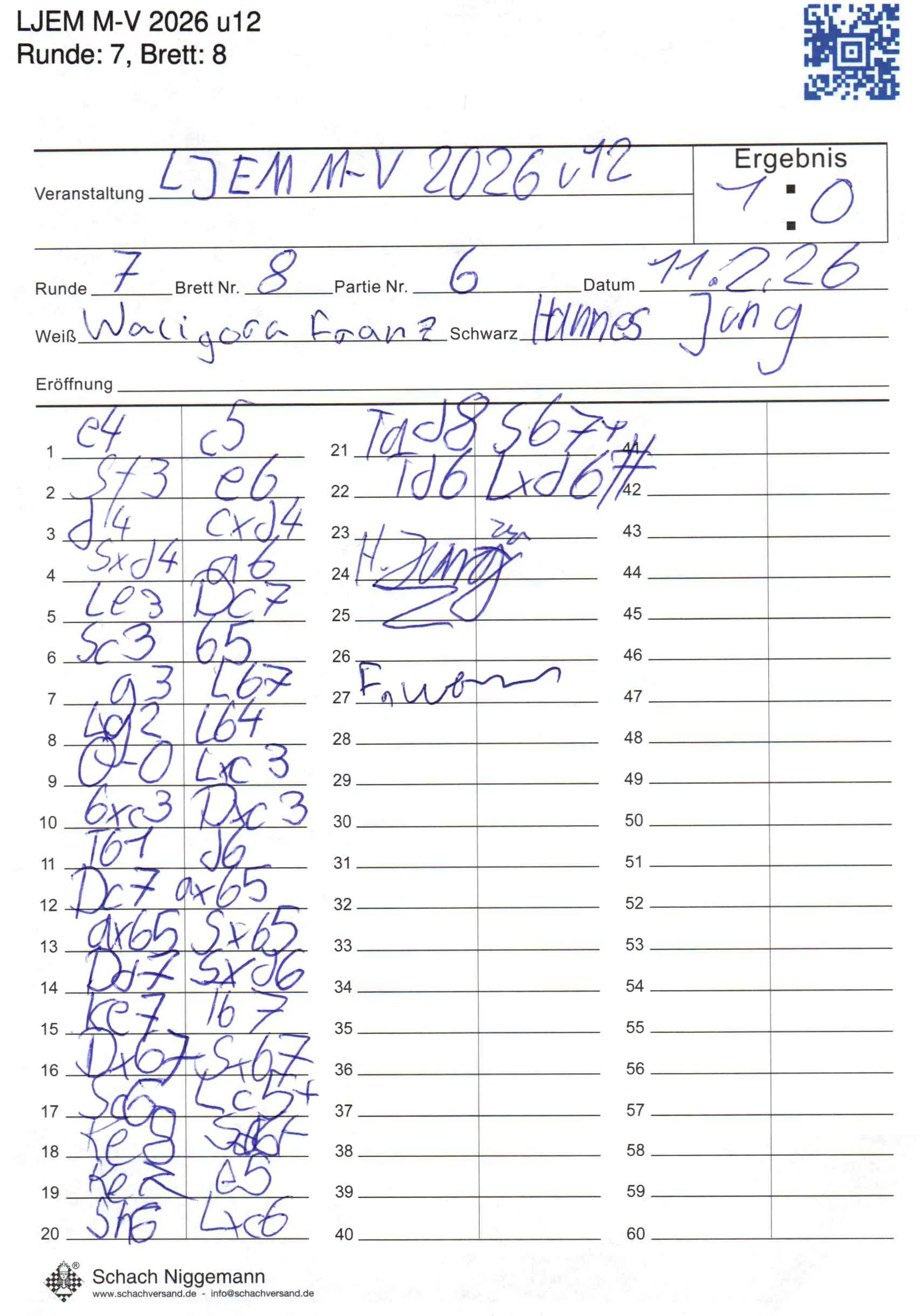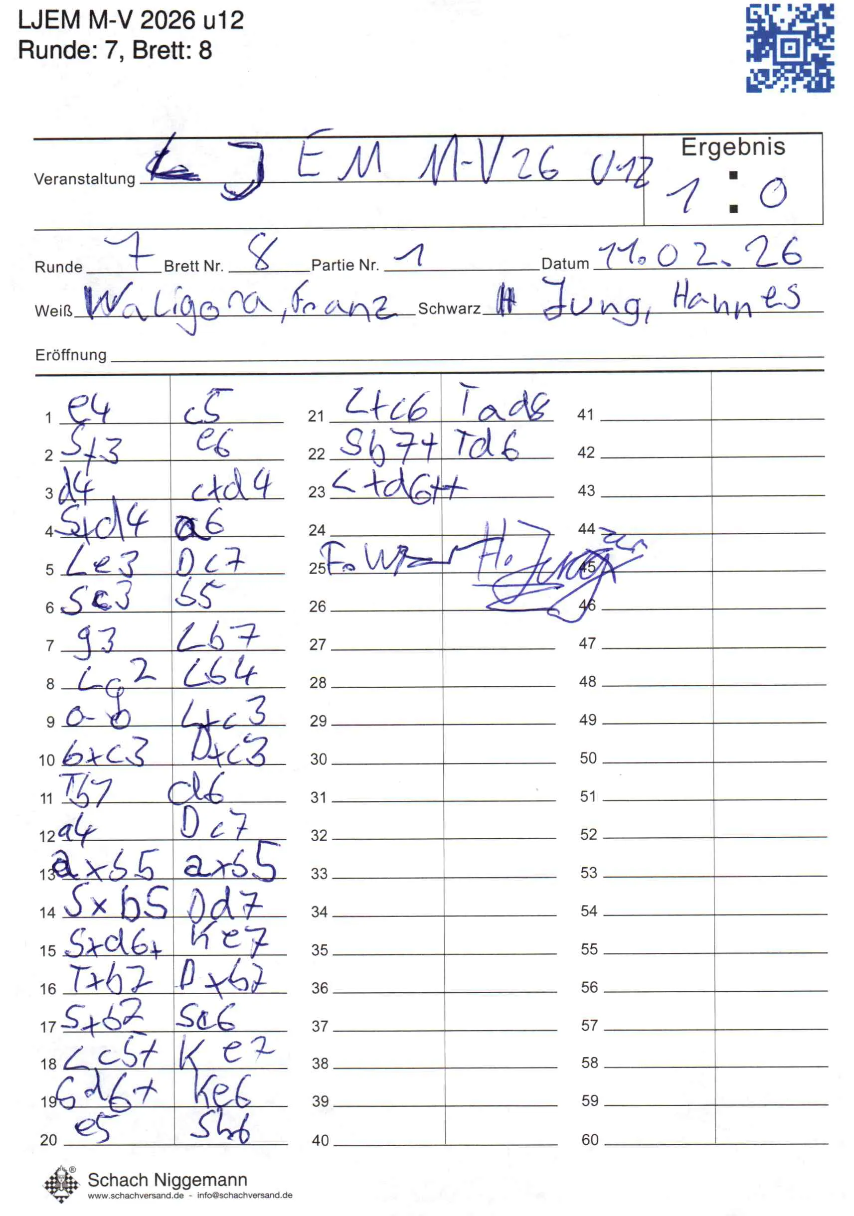 | Weiß: | Waligora, Franz | Schwarz: | Jung, Hannes |
