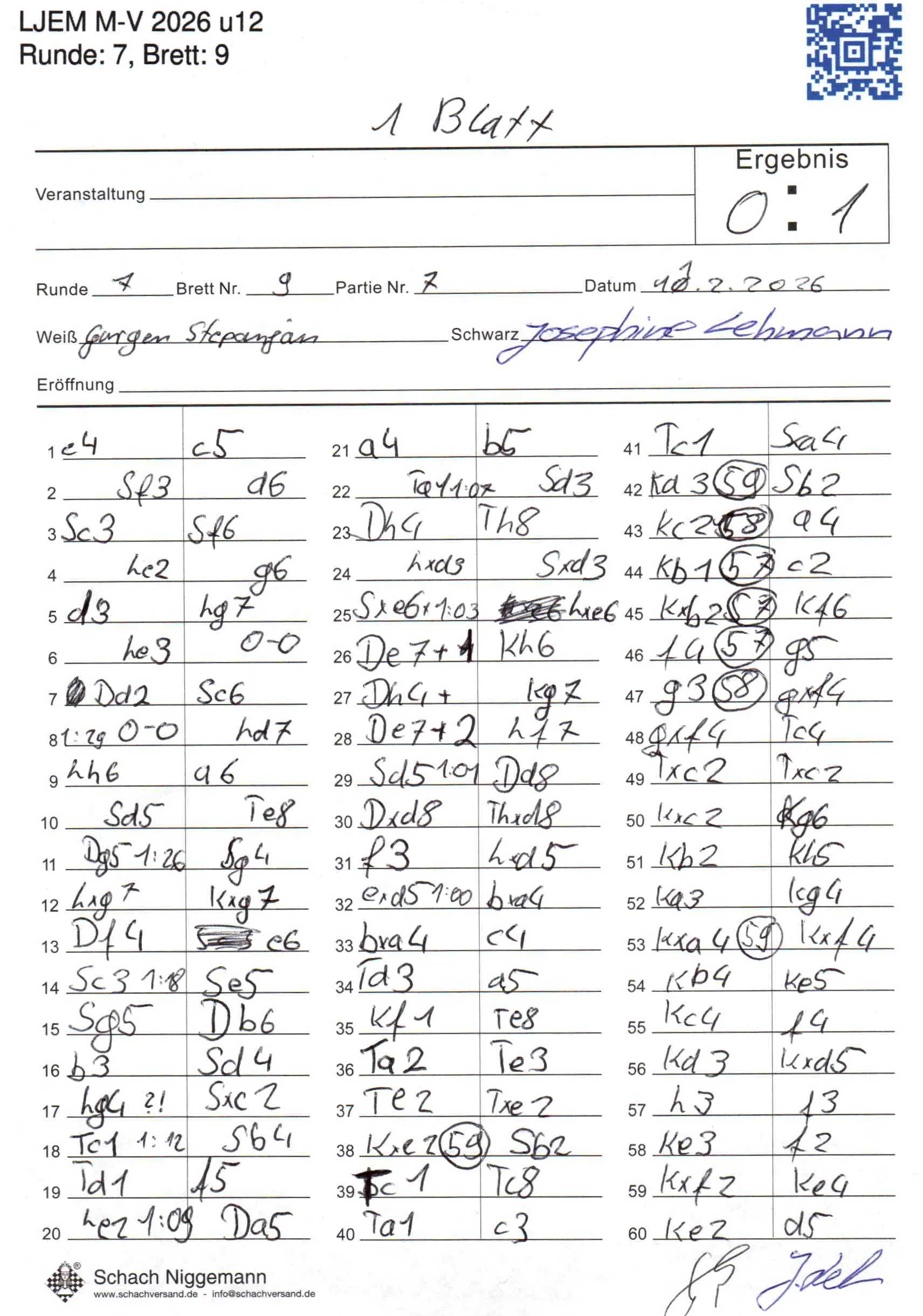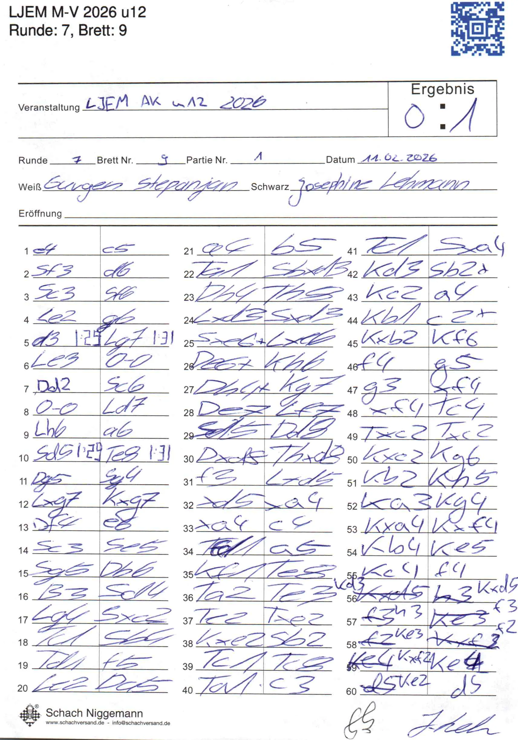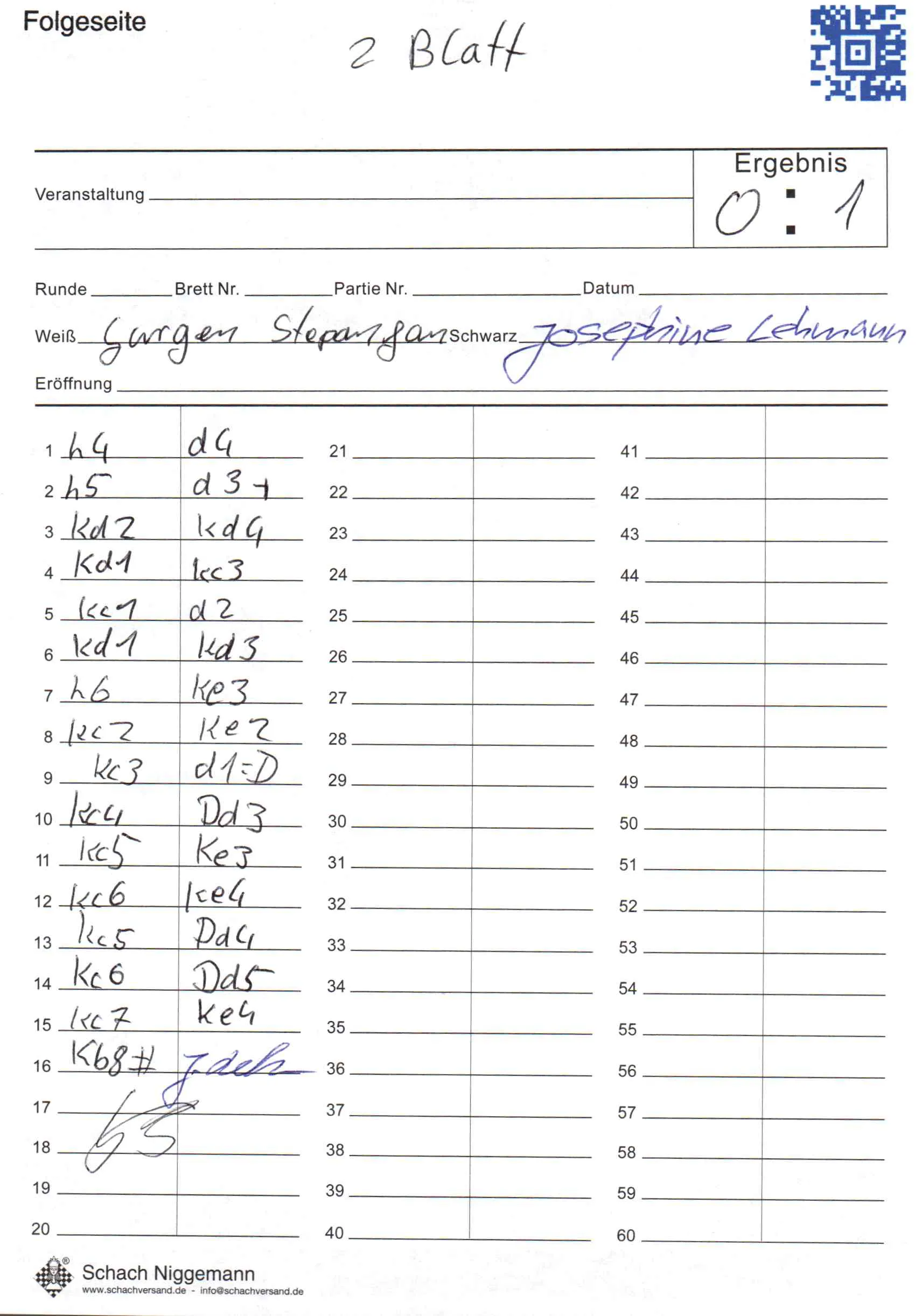 | Weiß: | Stepanjan, Gurgen | Schwarz: | Lehmann, Josephine |