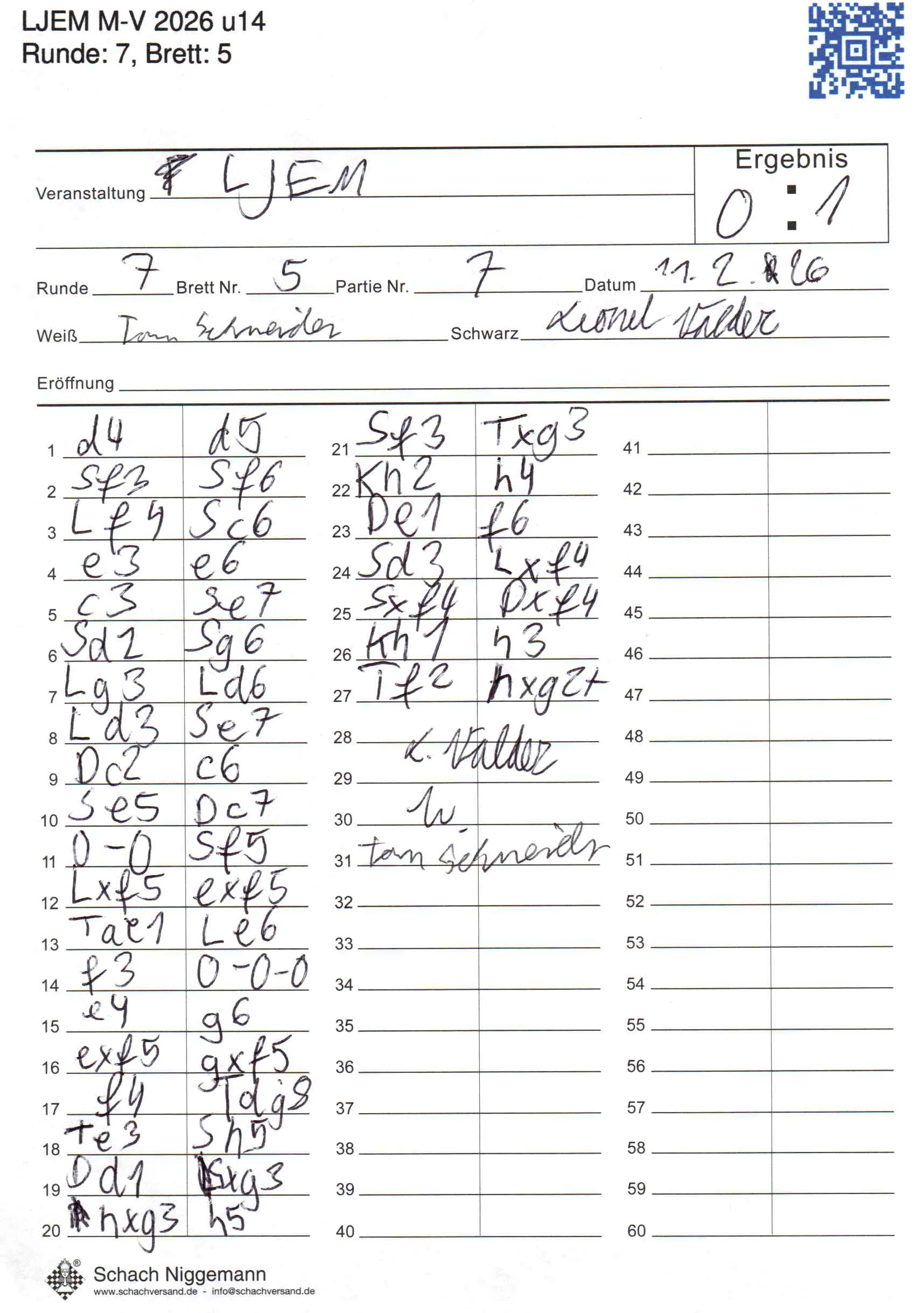 | Weiß: | Schneider, Tom | Schwarz: | Wiechert, Leonel |