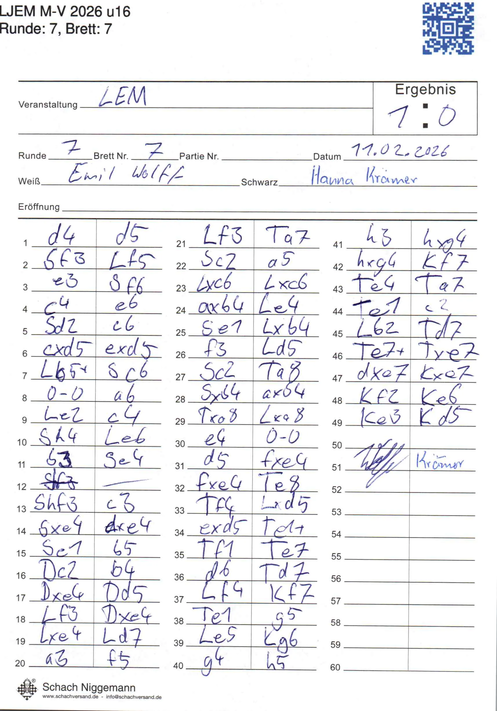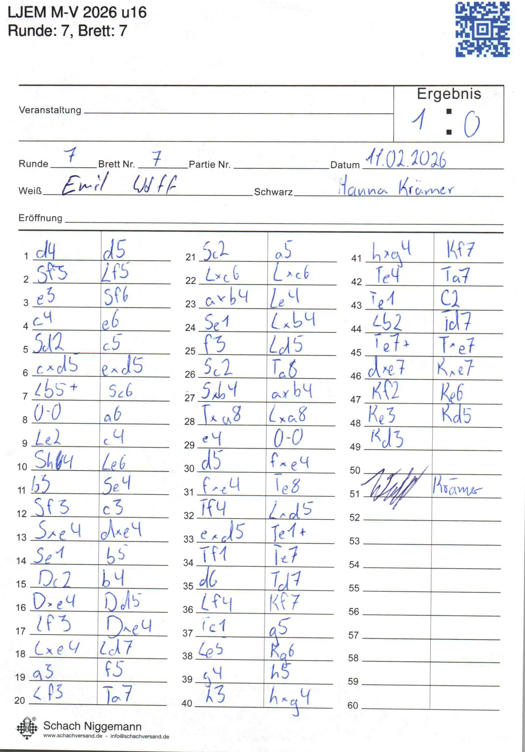 | Weiß: | Wolff, Emil | Schwarz: | Krämer, Hanna Sophie |