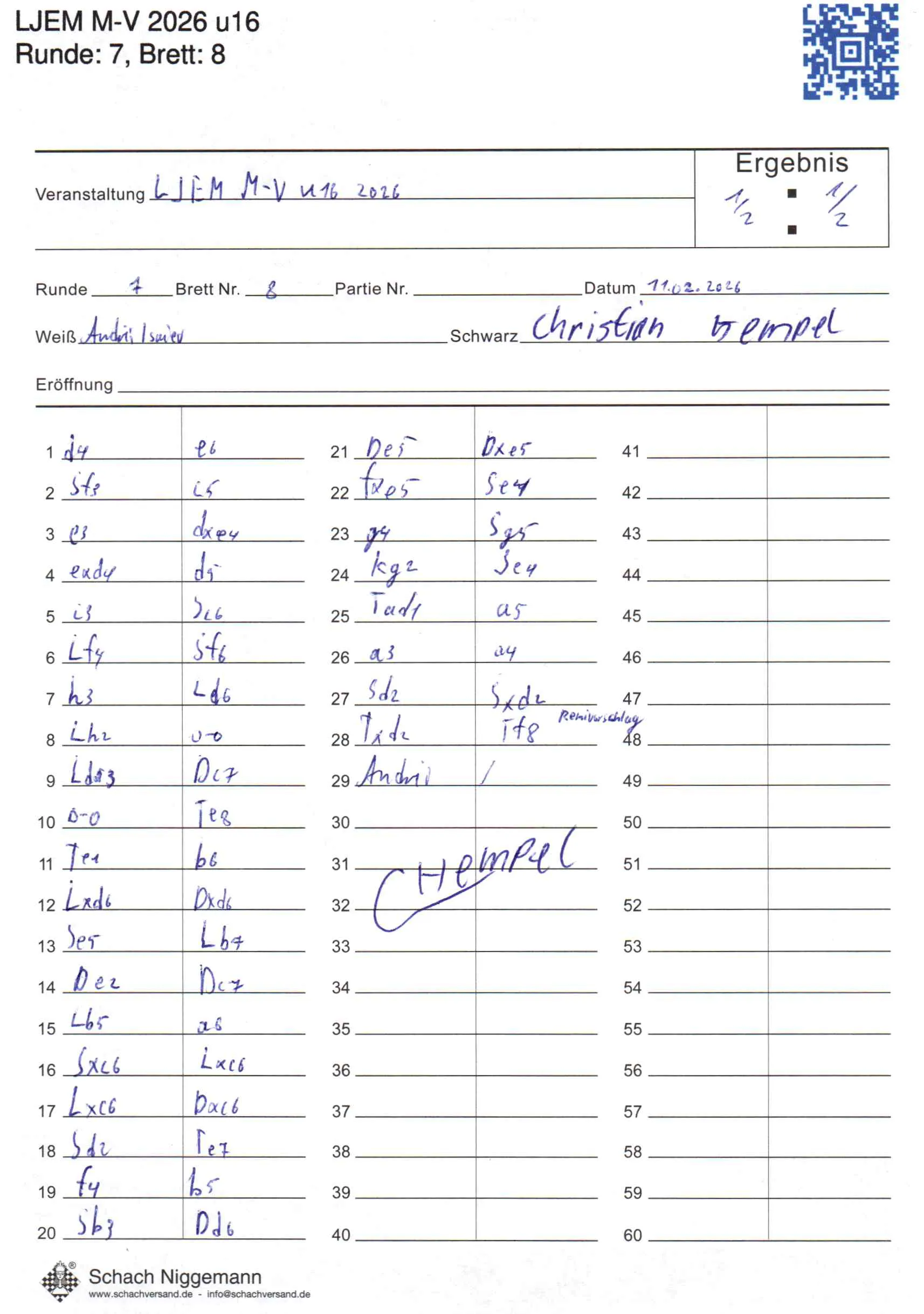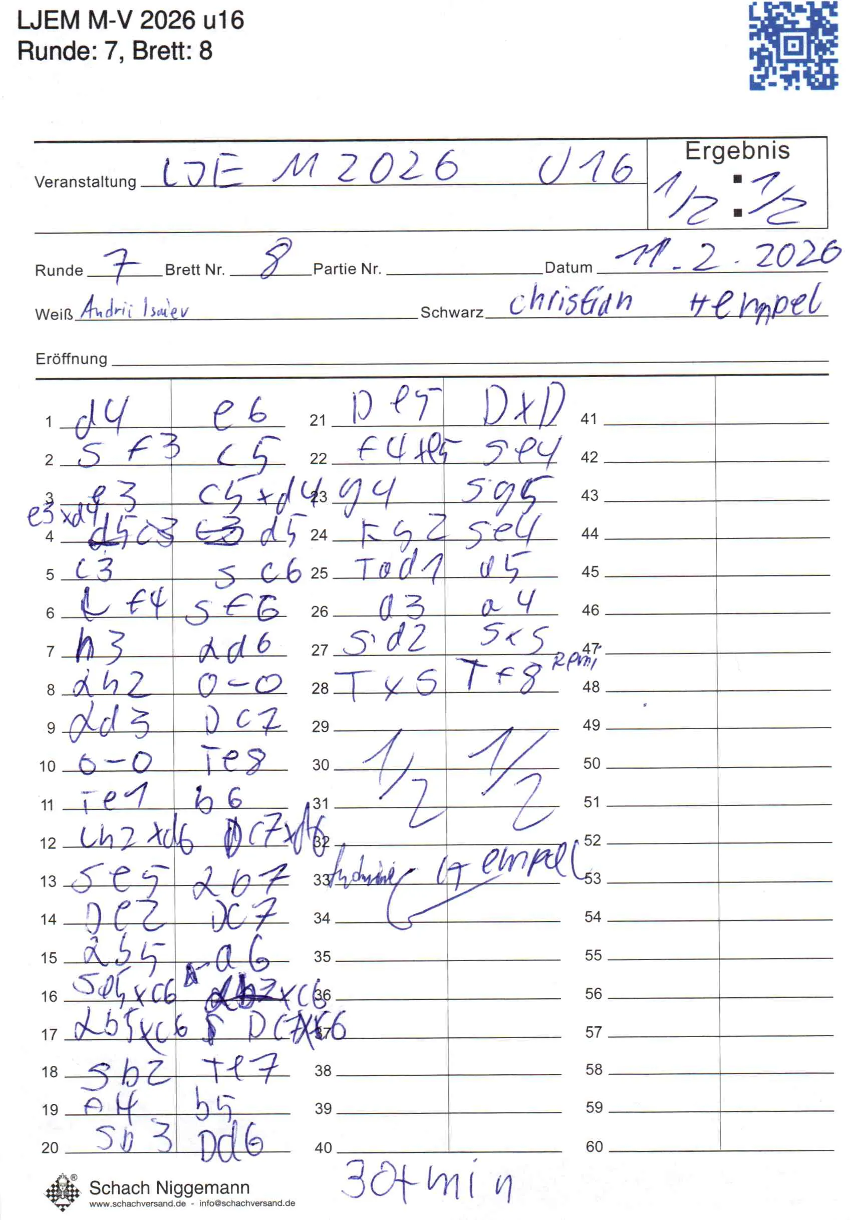 | Weiß: | Isaiev, Andrii | Schwarz: | Hempel, Christian |