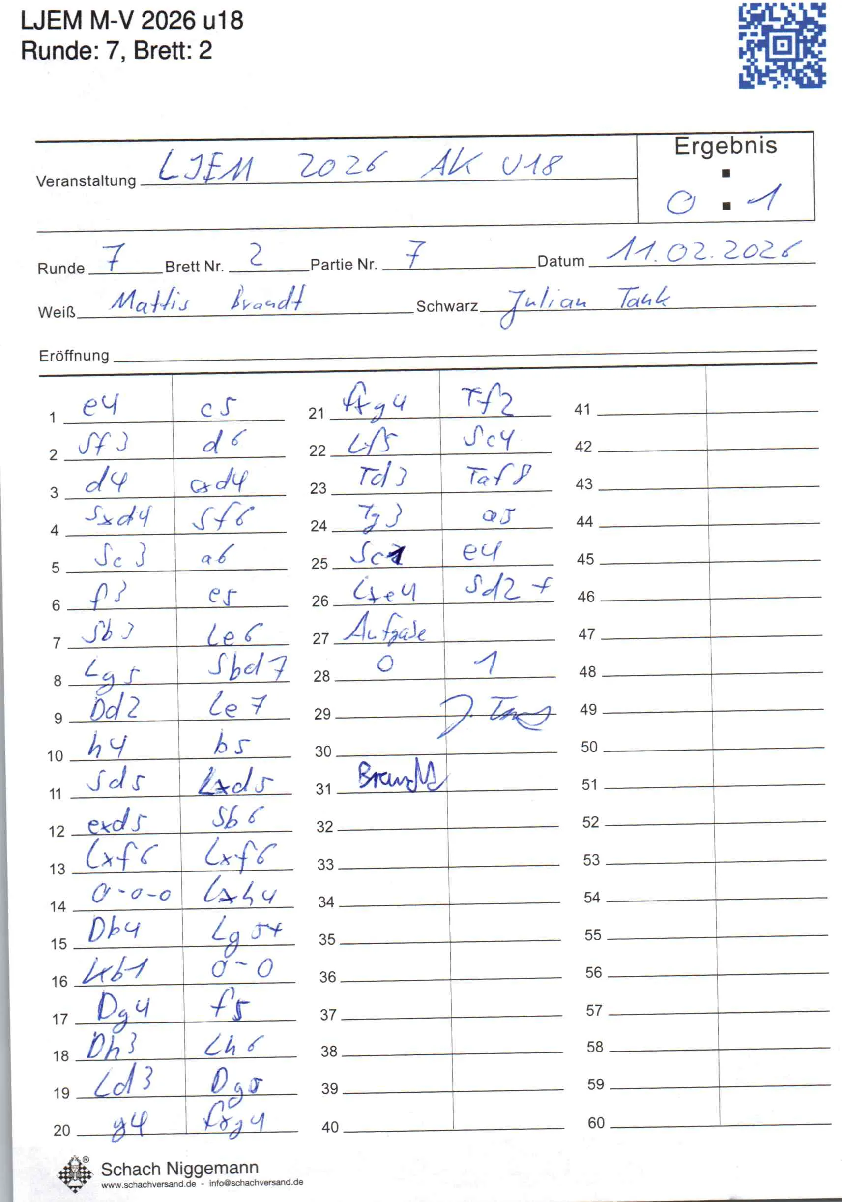 | Weiß: | Brandt, Mattis | Schwarz: | Tank, Julian |
