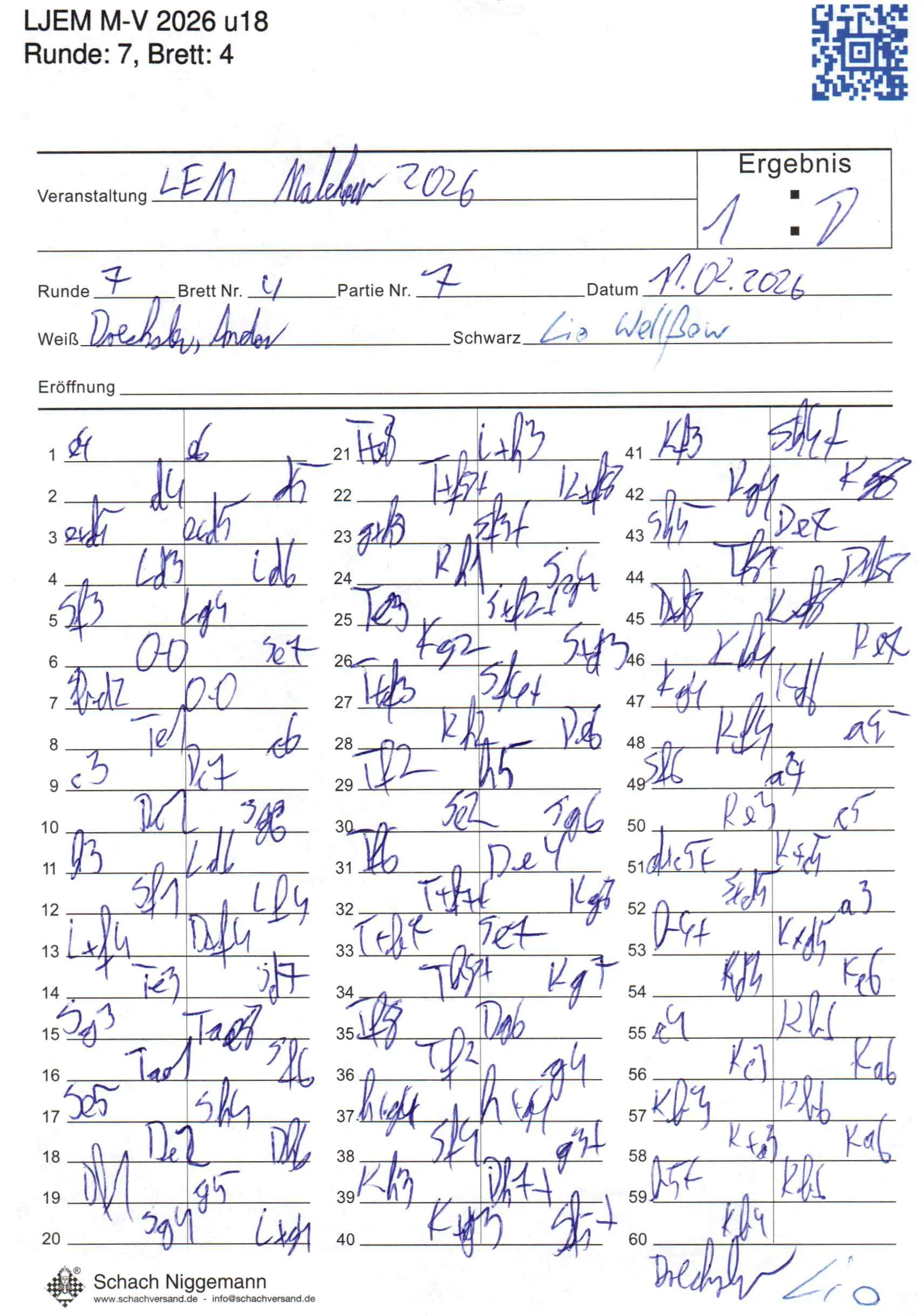 | Weiß: | Drechsler, Andor | Schwarz: | Wellßow, Lio Keanu |