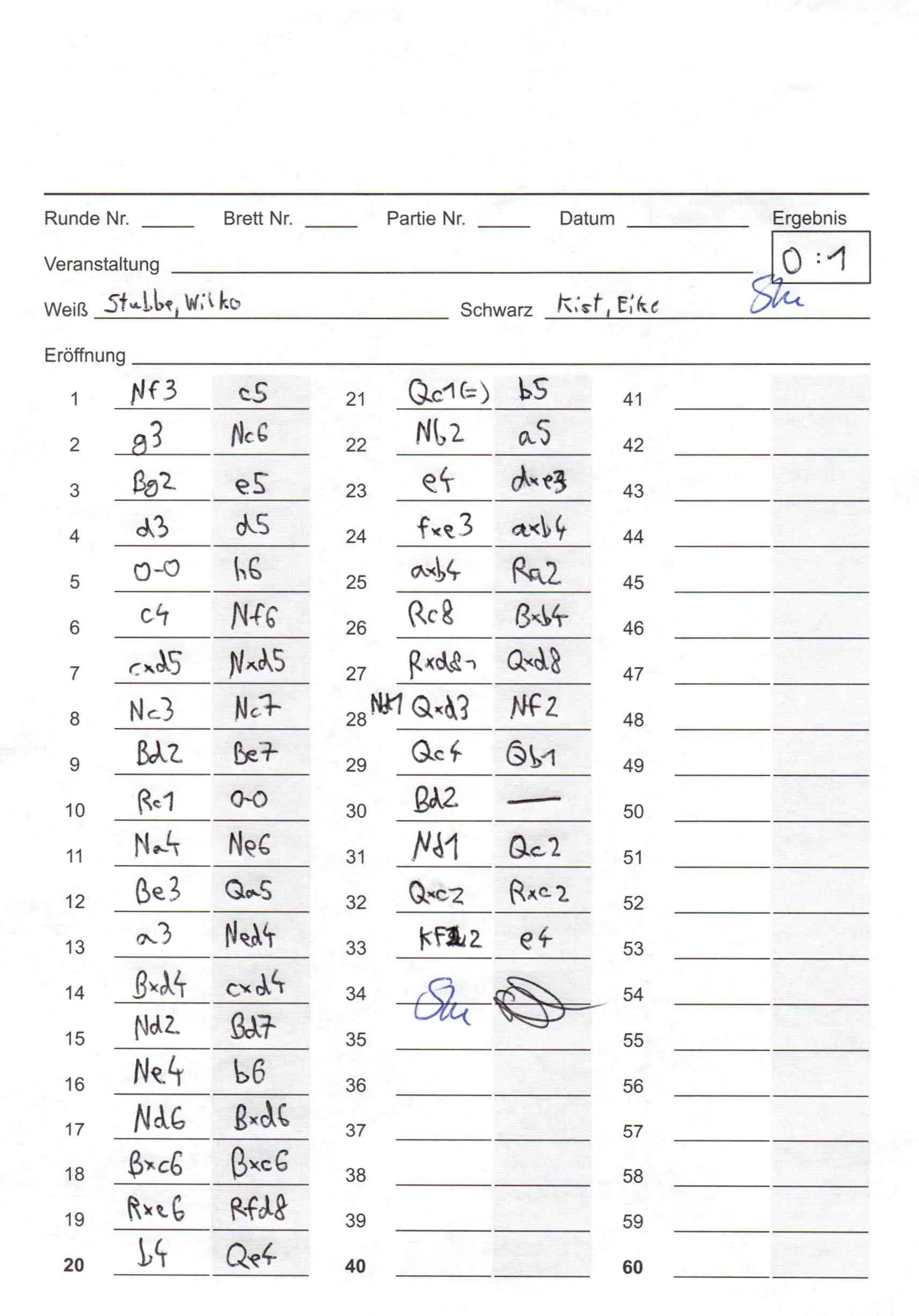 | Weiß: | Stubbe,Wilko | Schwarz: | Kist,Eike Andreas |