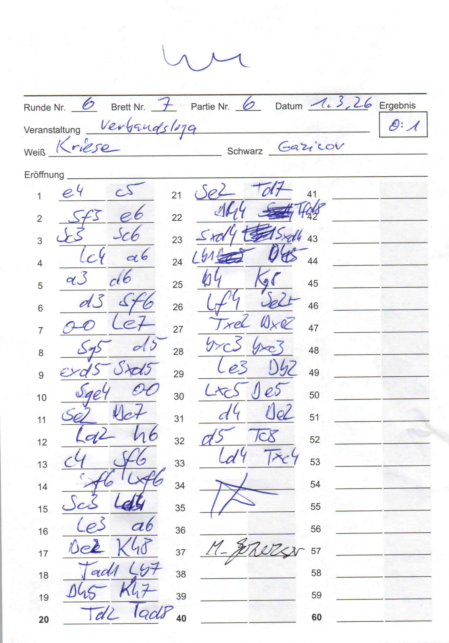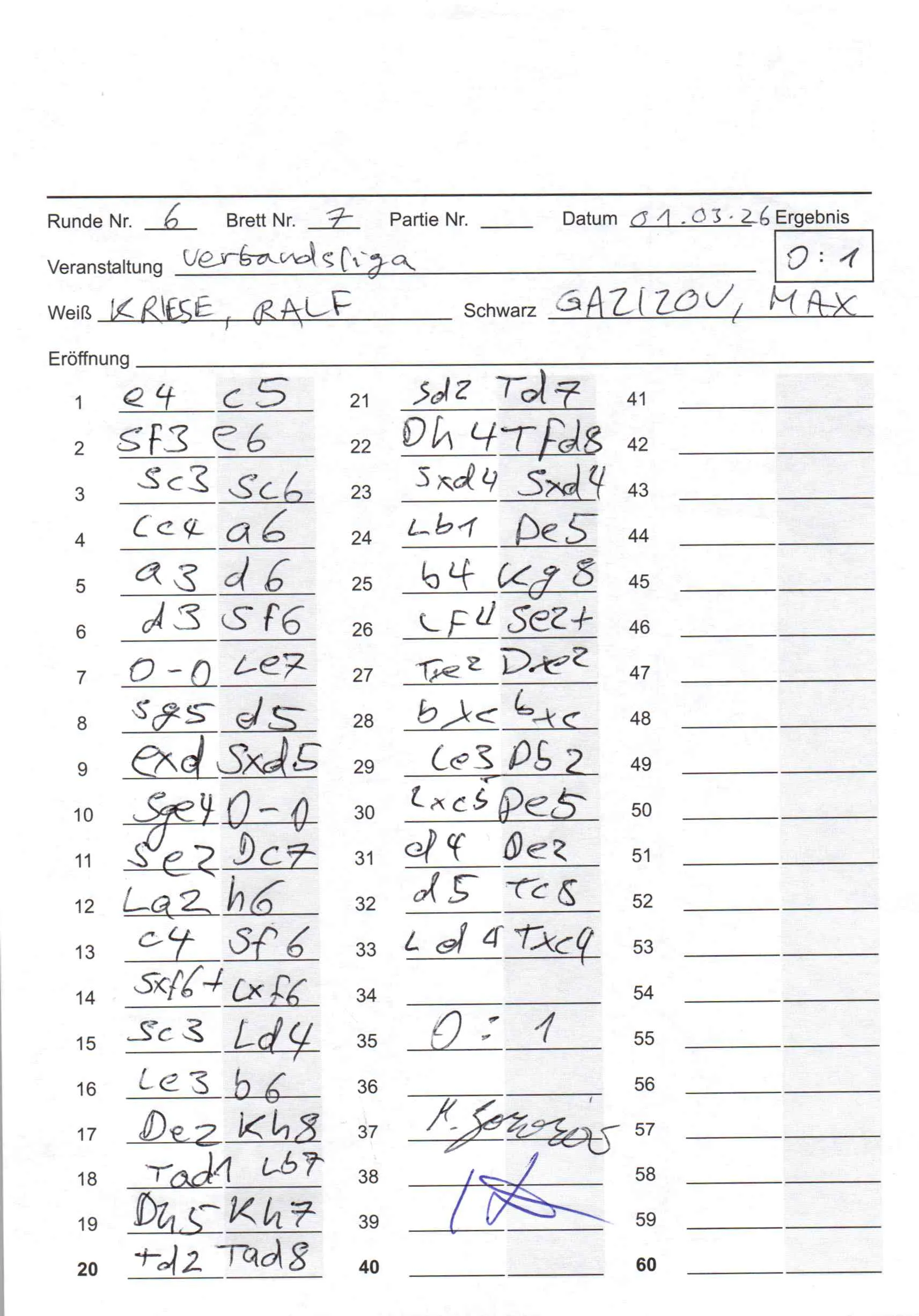 | Weiß: | Kriese,Ralf | Schwarz: | Gazizov,Max |