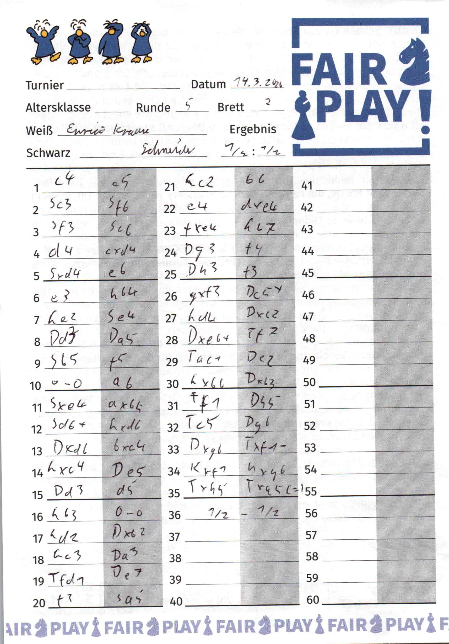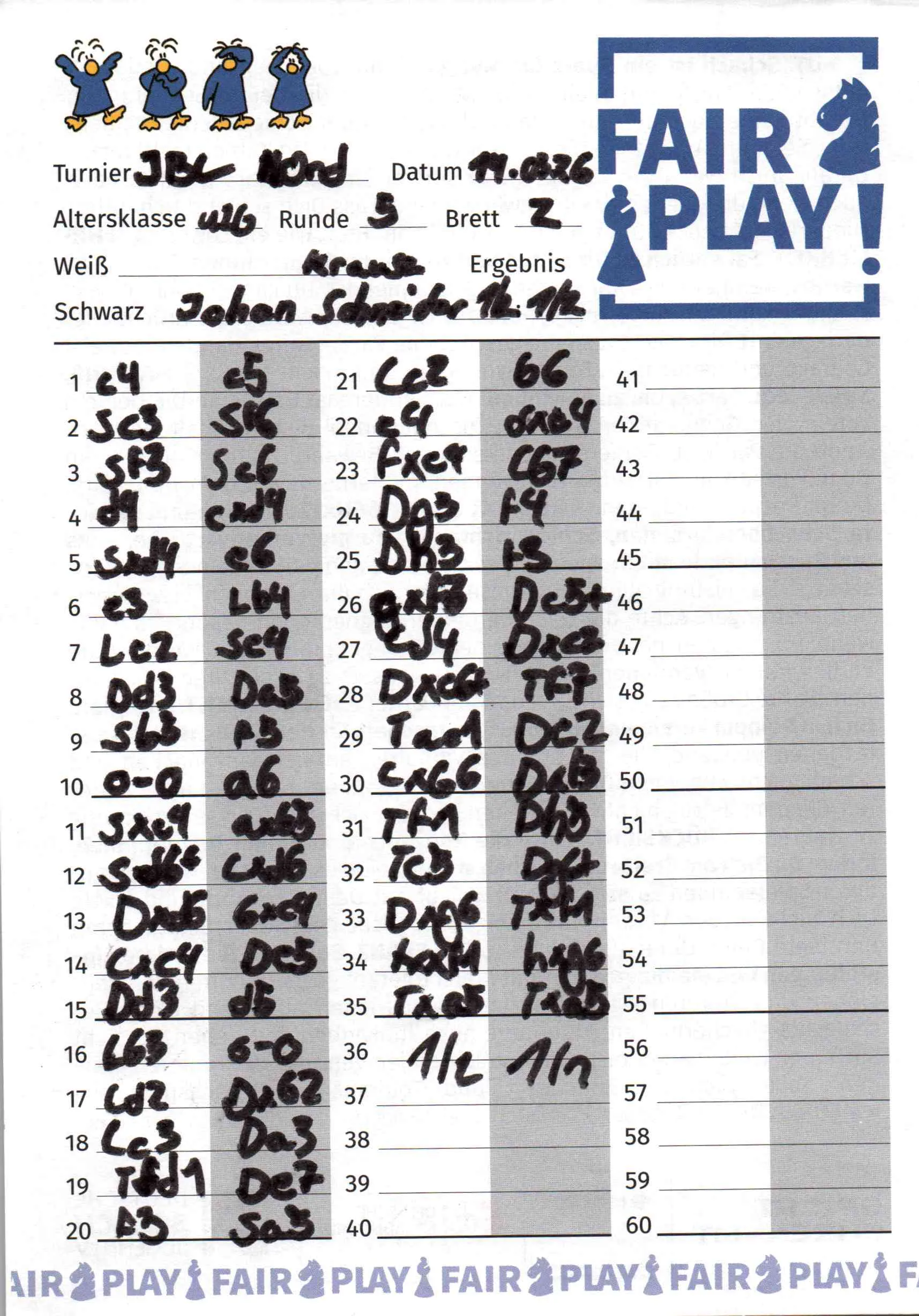 Weiß: Krause, Enrico Schwarz: Schneider, Johan