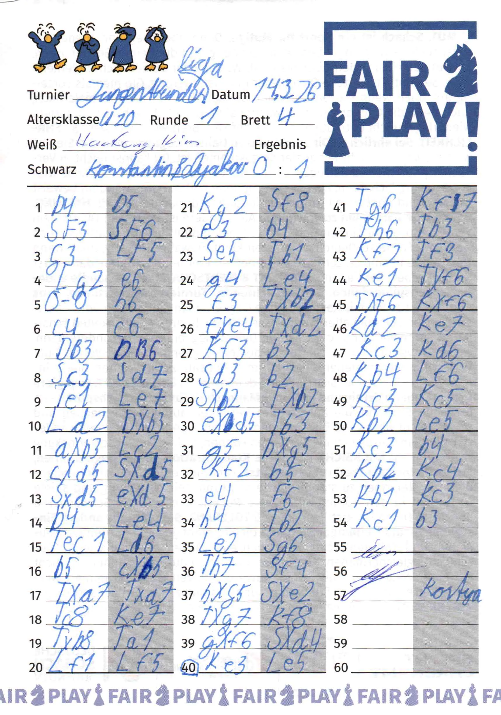 Weiß: Hartung, Kim Schwarz: Belyakov, Konstantin