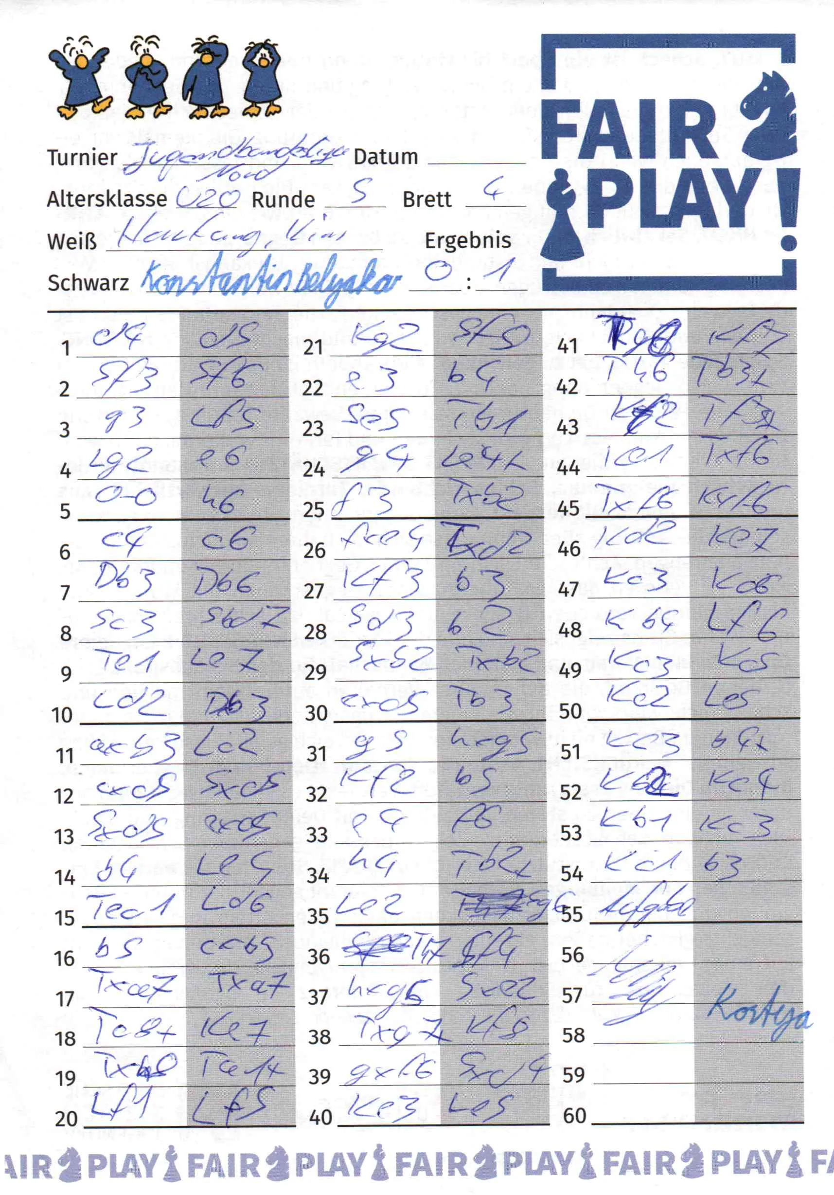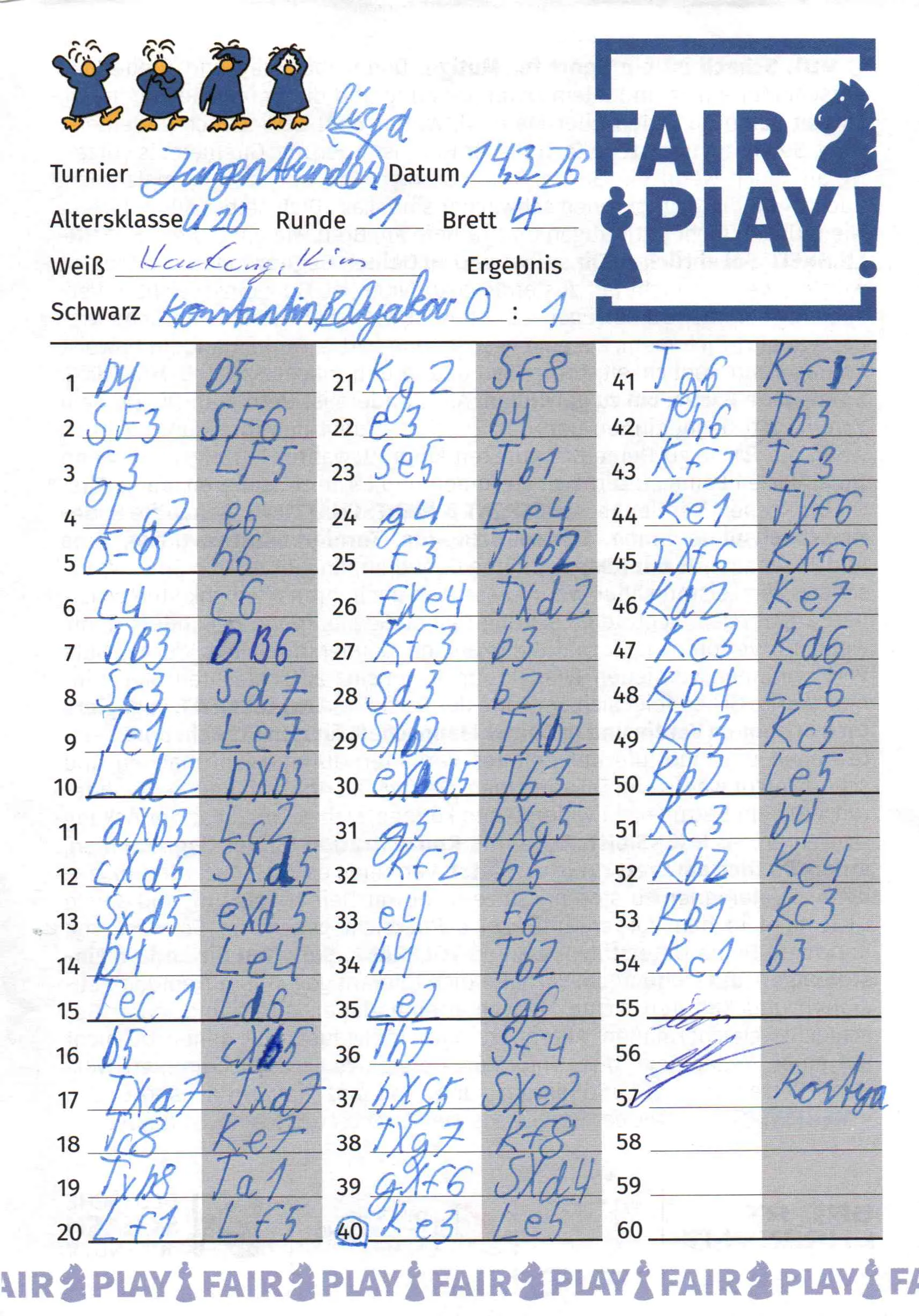 | Weiß: | Hartung, Kim | Schwarz: | Belyakov, Konstantin |