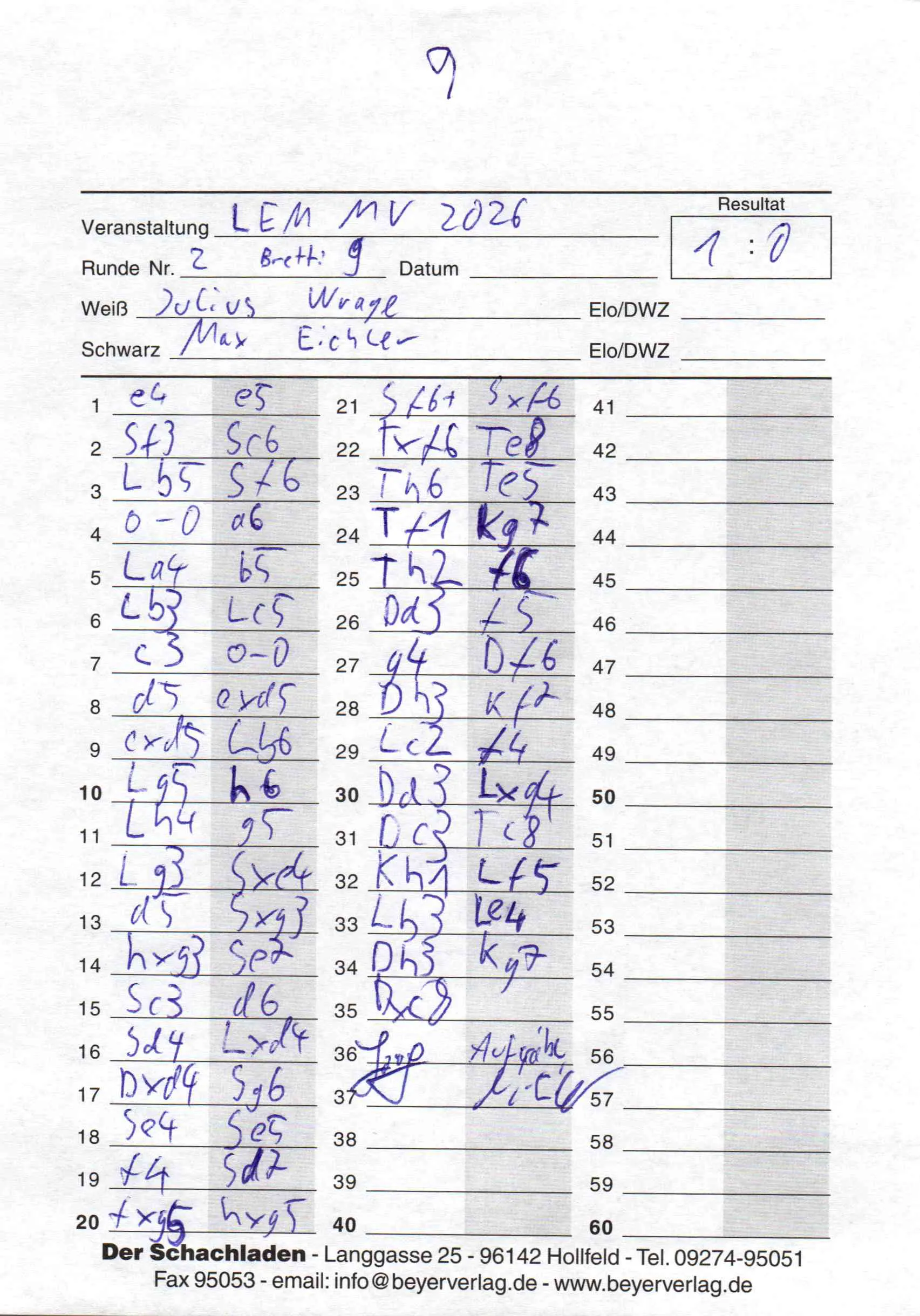 Game 2.9 of LEM M-V 2026 Open for robert