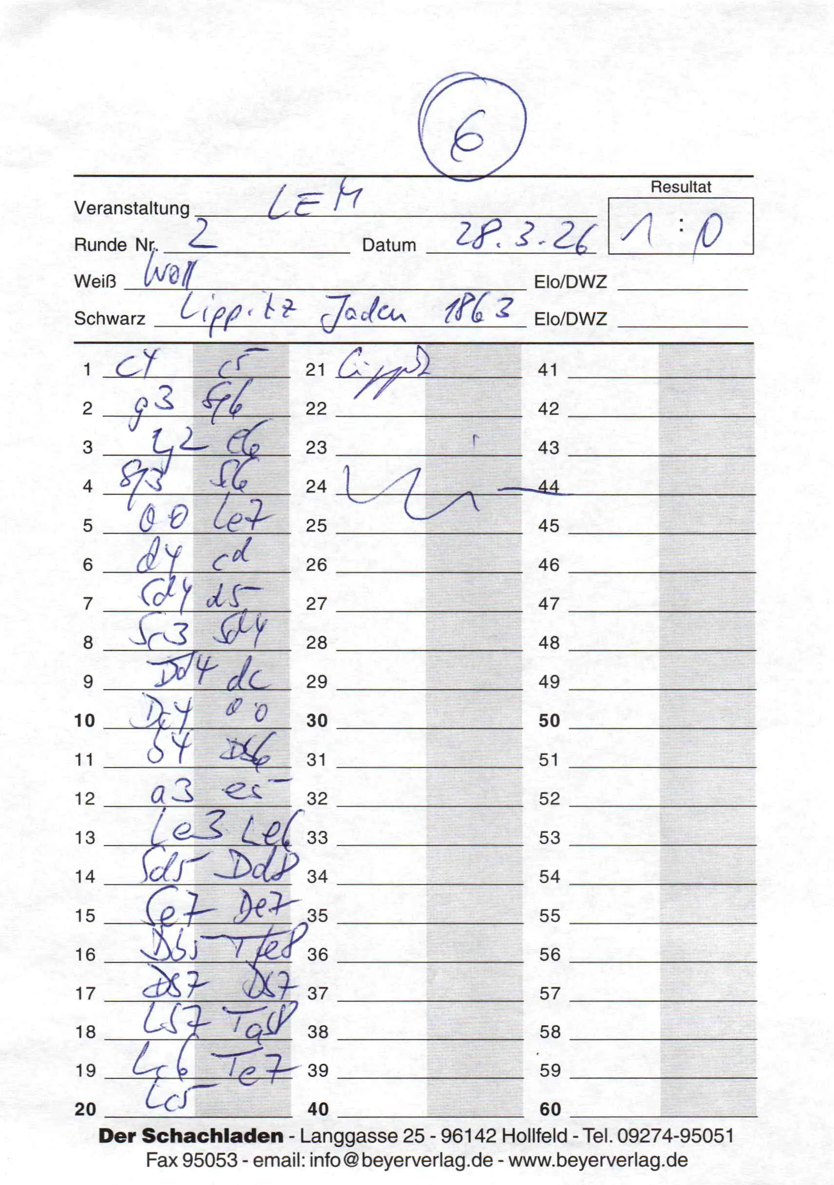 Game 2.6 of LEM M-V 2026 Meisterturnier for robert